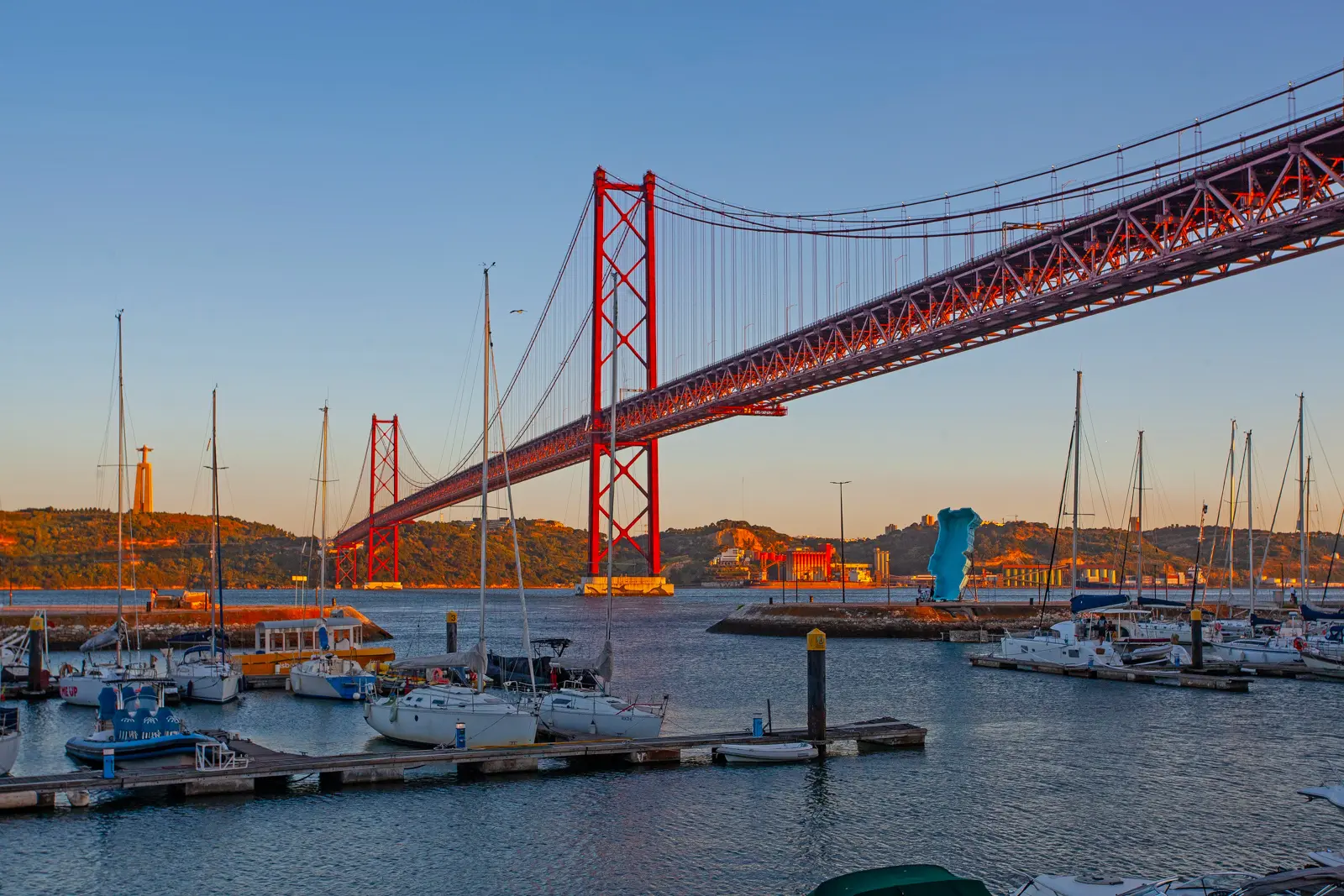 This symbolism is part of what makes the bridge so fascinating: it literally connects Lisbon to the region south of the Tagus, but it also represents a connection to freedom, hope, and transformation. Its reddish-orange color and suspension design often remind visitors of the Golden Gate Bridge in San Francisco, and the resemblance is real. Both bridges share the same International Orange paint color, giving Lisbon its own elegant maritime icon. Interestingly, the 25 de Abril Bridge was actually built by the American Bridge Company, the same firm that constructed San Francisco’s Bay Bridge.