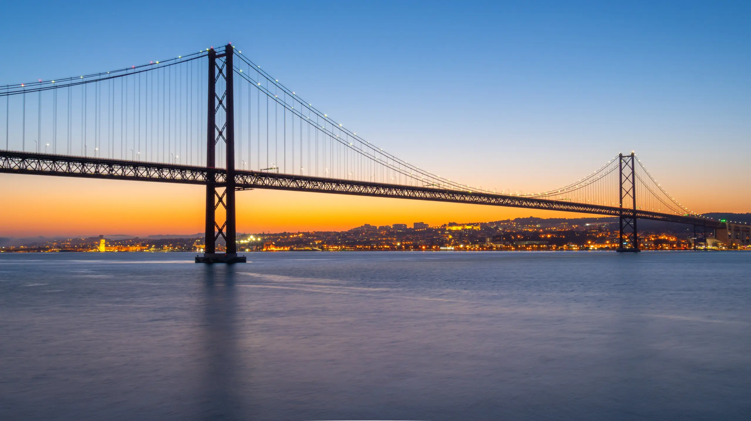 At sunset, the whole scene transforms. The bridge becomes a glowing silhouette against skies of gold, apricot, and violet. During blue hour, its lights shimmer across the river in long, dreamy reflections. Each angle tells a different story: one of engineering brilliance, one of maritime soul, and one of Lisbon simply being Lisbon – peaceful, poetic, and endlessly captivating.