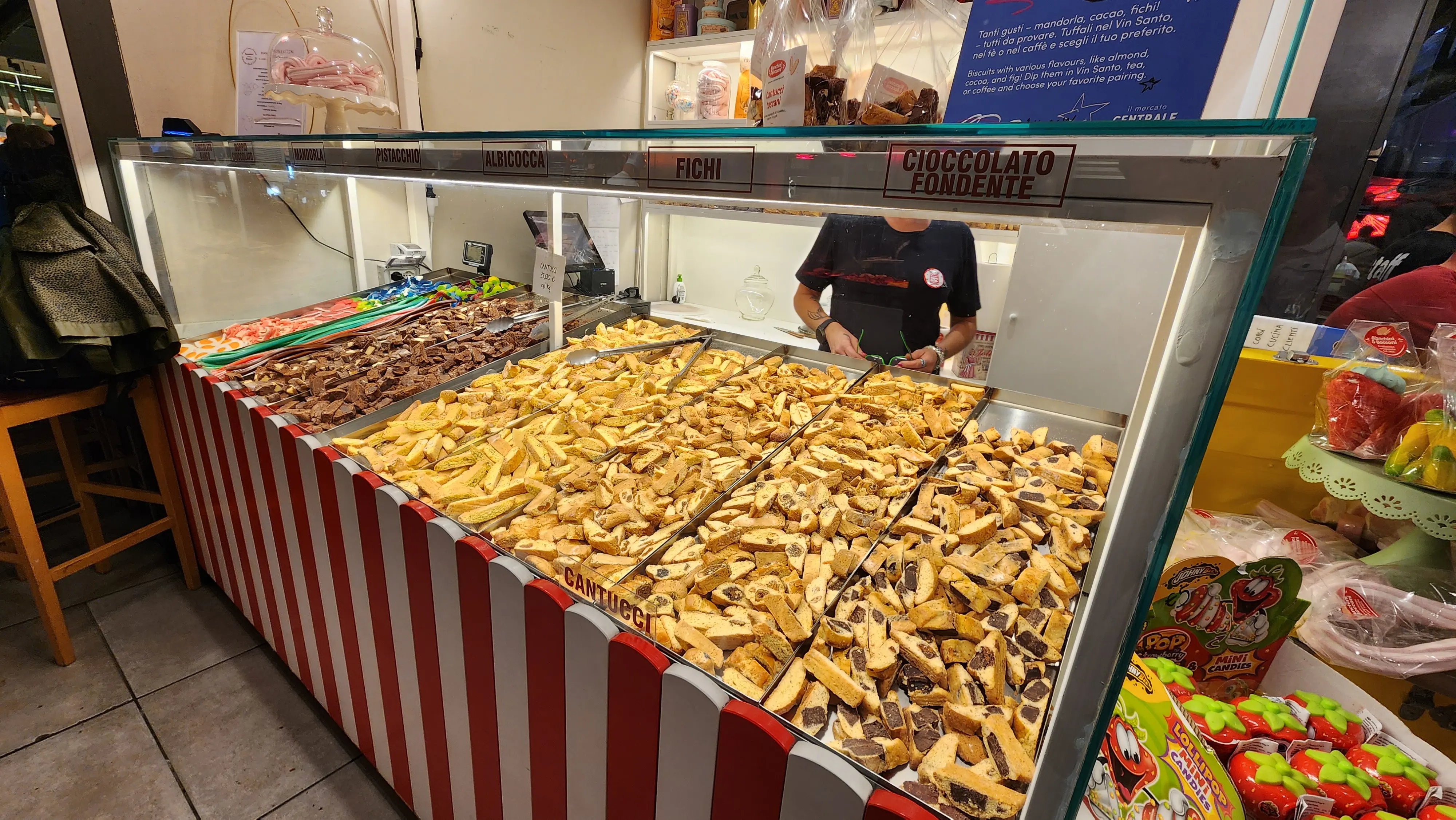 The ground floor is where you’ll find local vendors selling the freshest produce, meats, cheeses, and other regional specialties. Wandering through the colorful stalls, I marveled at the vibrant displays of sun-ripened tomatoes, fragrant herbs, and wheels of aged Pecorino cheese. It’s the perfect spot to stock up on authentic Tuscan ingredients or simply soak in the atmosphere. If you’re a fan of Italian charcuterie, don’t miss the prosciutto, salami, and wild boar sausages that reflect Tuscany’s rich culinary heritage.