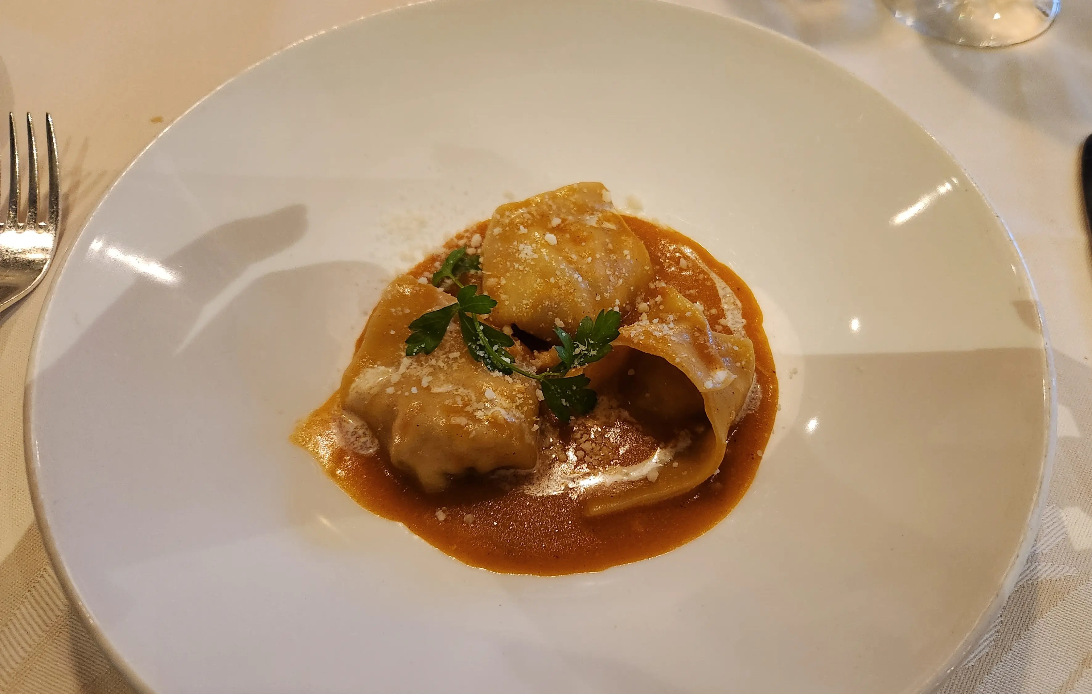 Moving on to the primi piatti, I indulged in the Lobster Tortelloni. These wide, delicate pillows of lobster-filled pasta were simmered in a rich, creamy lobster sauce. Each bite was a luxurious explosion of flavor, with the lobster’s sweetness beautifully complemented by the creamy sauce.
