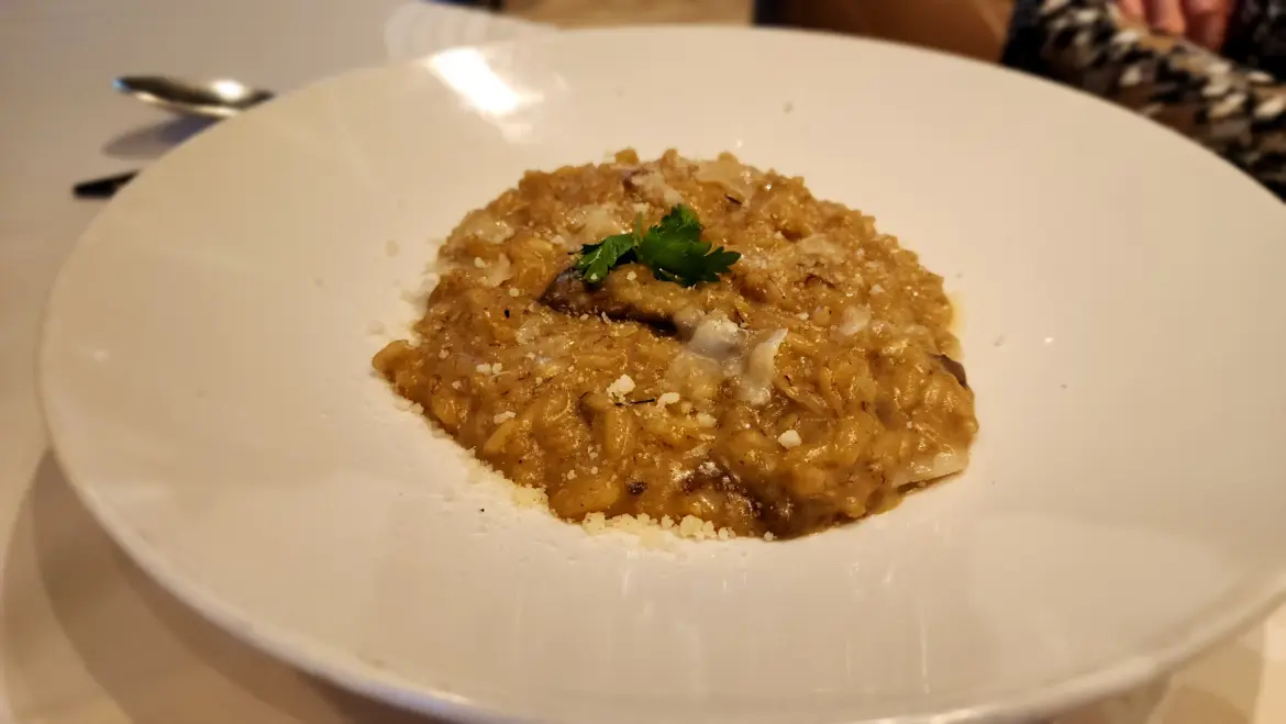 The Porcini Mushroom Risotto was another highlight. This northern Italian specialty, made with vialone nano rice simmered with shallots, white wine, and rich porcini mushrooms, was finished with shaved parmesan. The creamy risotto was packed with earthy flavors and had a wonderful, silky texture.