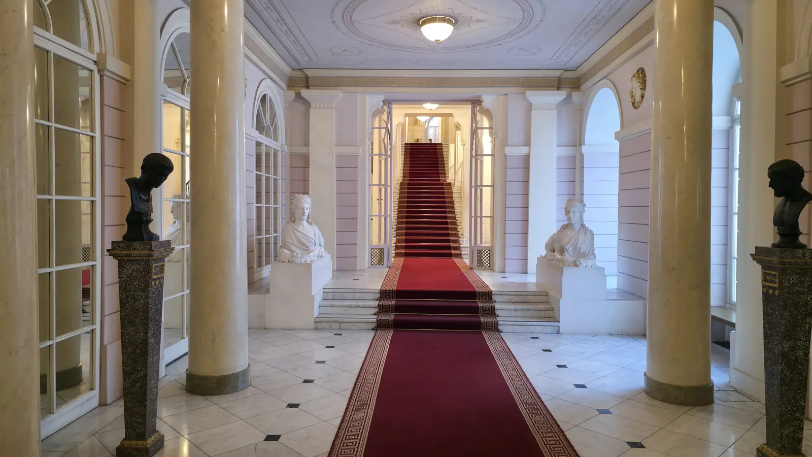 🌉 Sphinx Staircase: Sculptural entrance framing the ascent to the State Rooms