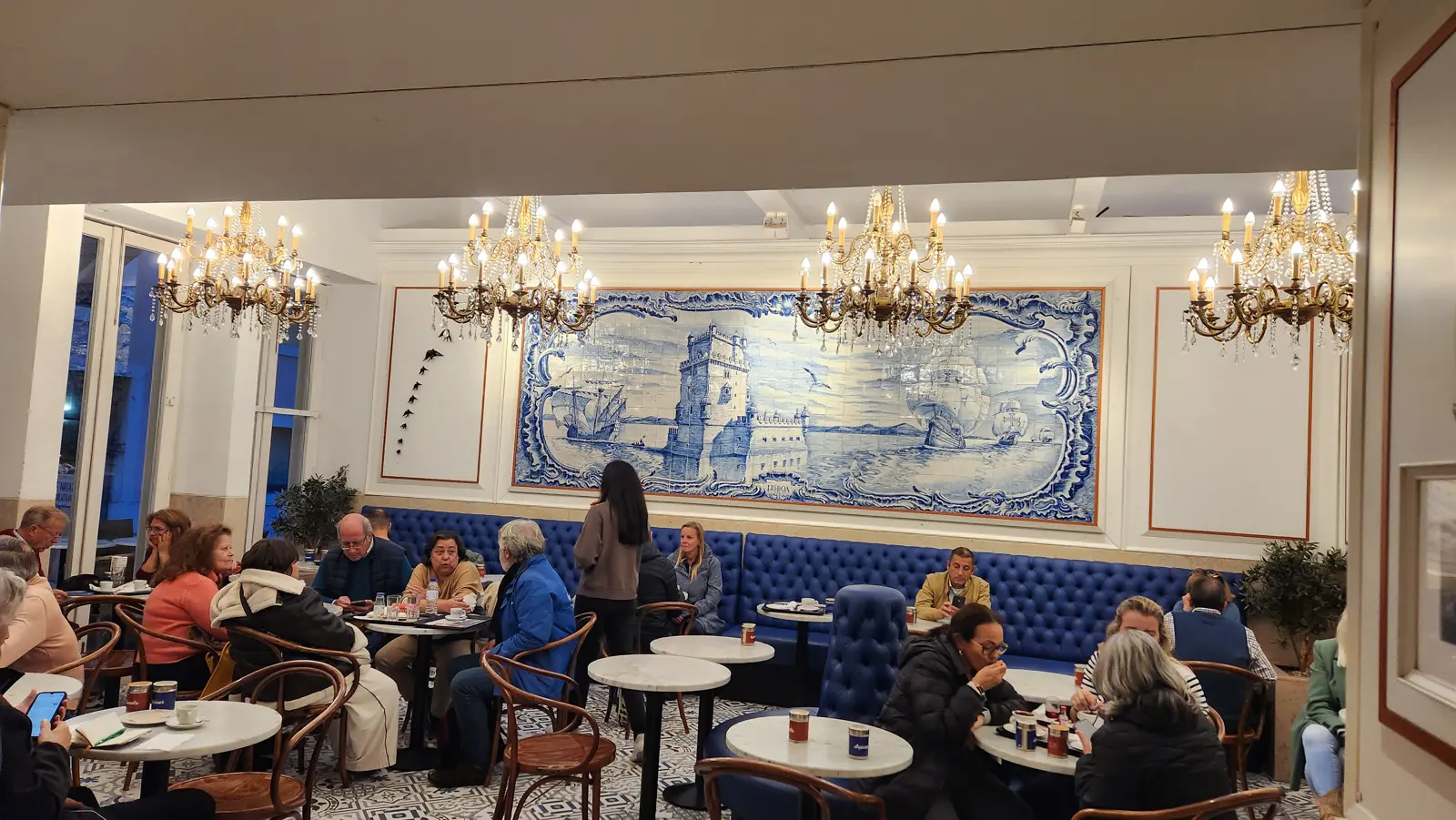 ☕ Café experience: Fábrica da Nata in Baixa — pastéis de nata surrounded by beautiful azulejo walls