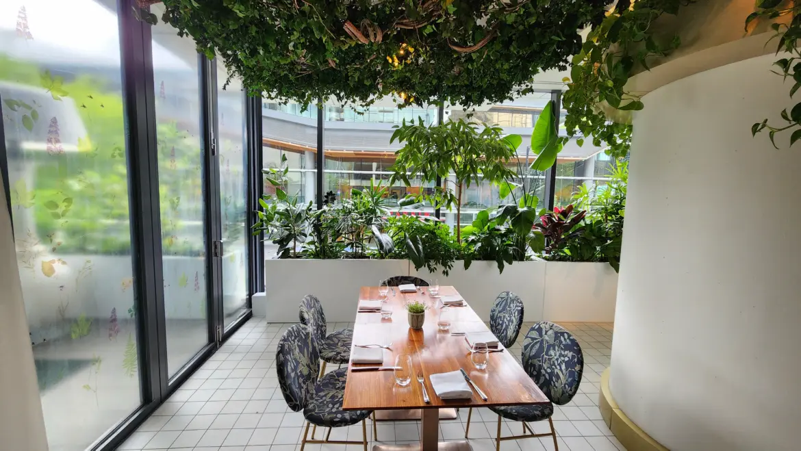 - Ambiance: The restaurant’s lush greenery and stylish decor create a serene, botanical ambiance, perfect for a relaxing meal.