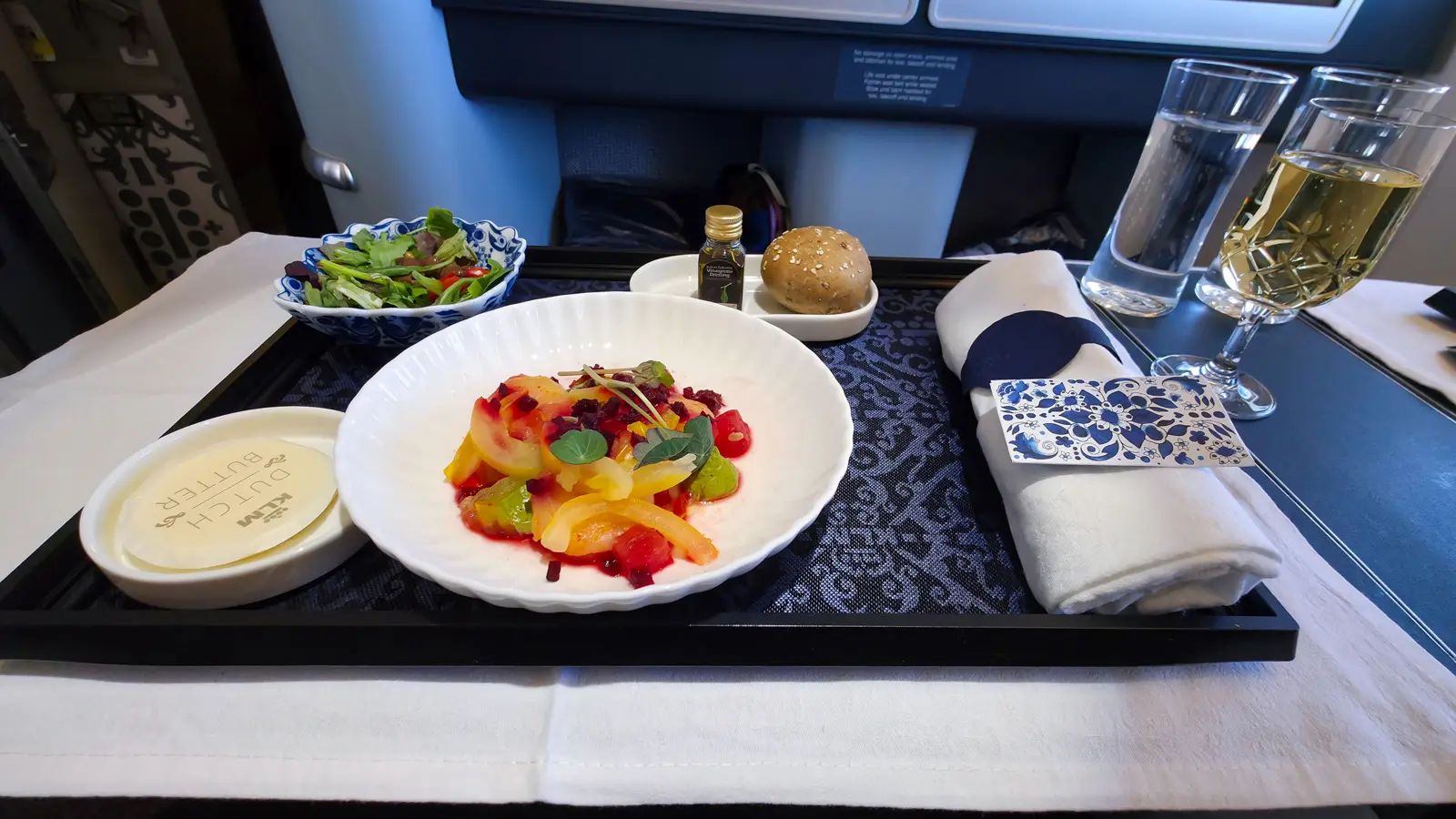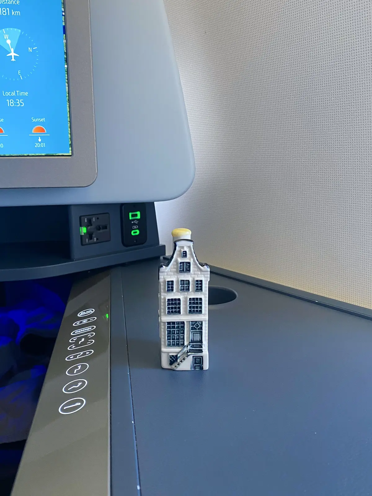 KLM’s Business Class meals feel wholesome and comforting, with an emphasis on balance and quality ingredients. The presentation is clean and thoughtful, and the experience feels relaxed rather than ceremonial. One of my favorite touches is the iconic Delft Blue miniature house gifted to passengers, a charming, uniquely Dutch detail that adds warmth and personality to the journey.
