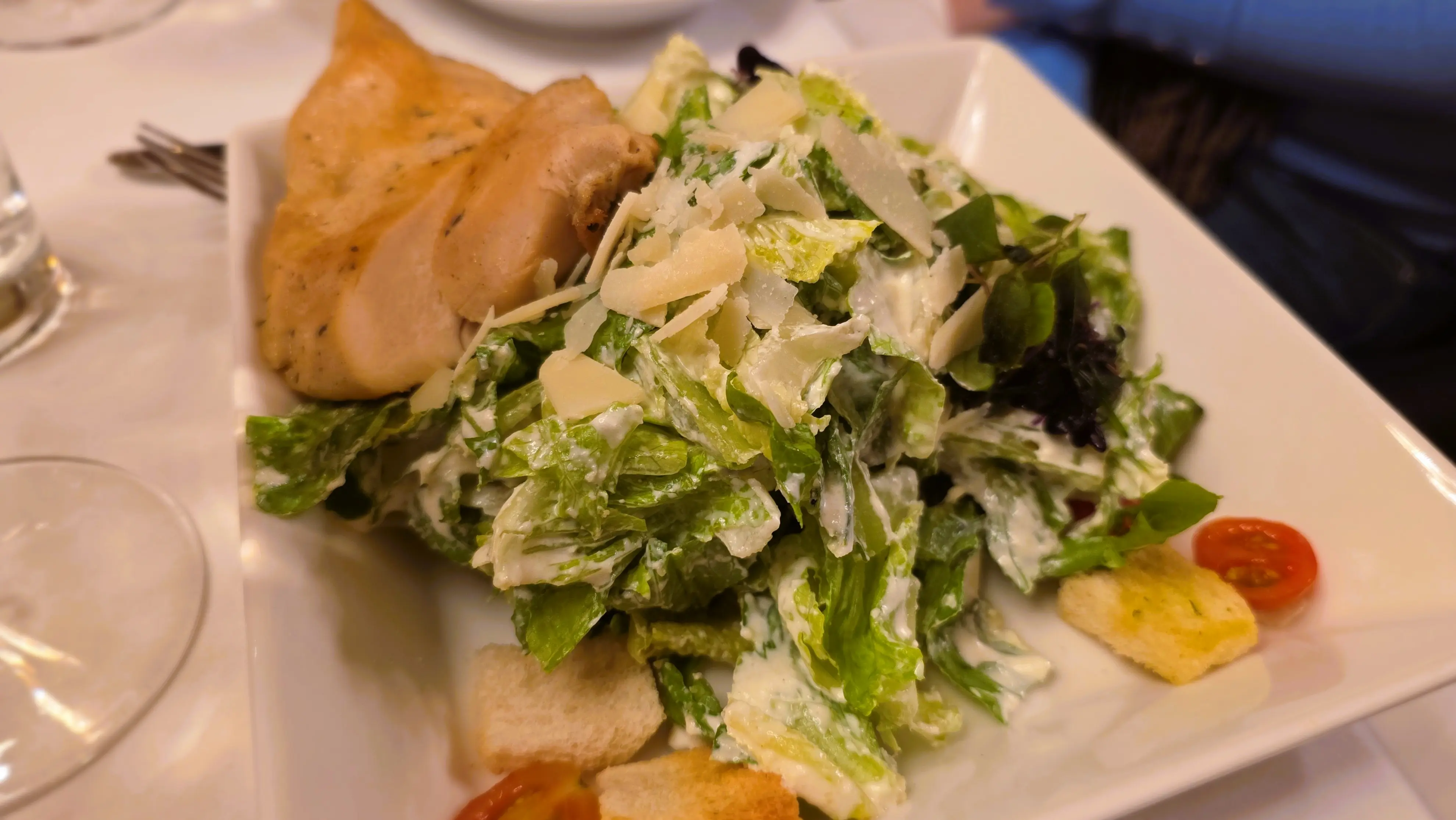 The Caesar Salad, ordered vegetarian and complemented with a grilled chicken breast, reflected Landtmann’s understanding of adaptability. Crisp romaine, a well-judged garlic and Parmesan dressing, and careful seasoning made it clear that even familiar dishes are treated with seriousness here. Then came the centerpiece.