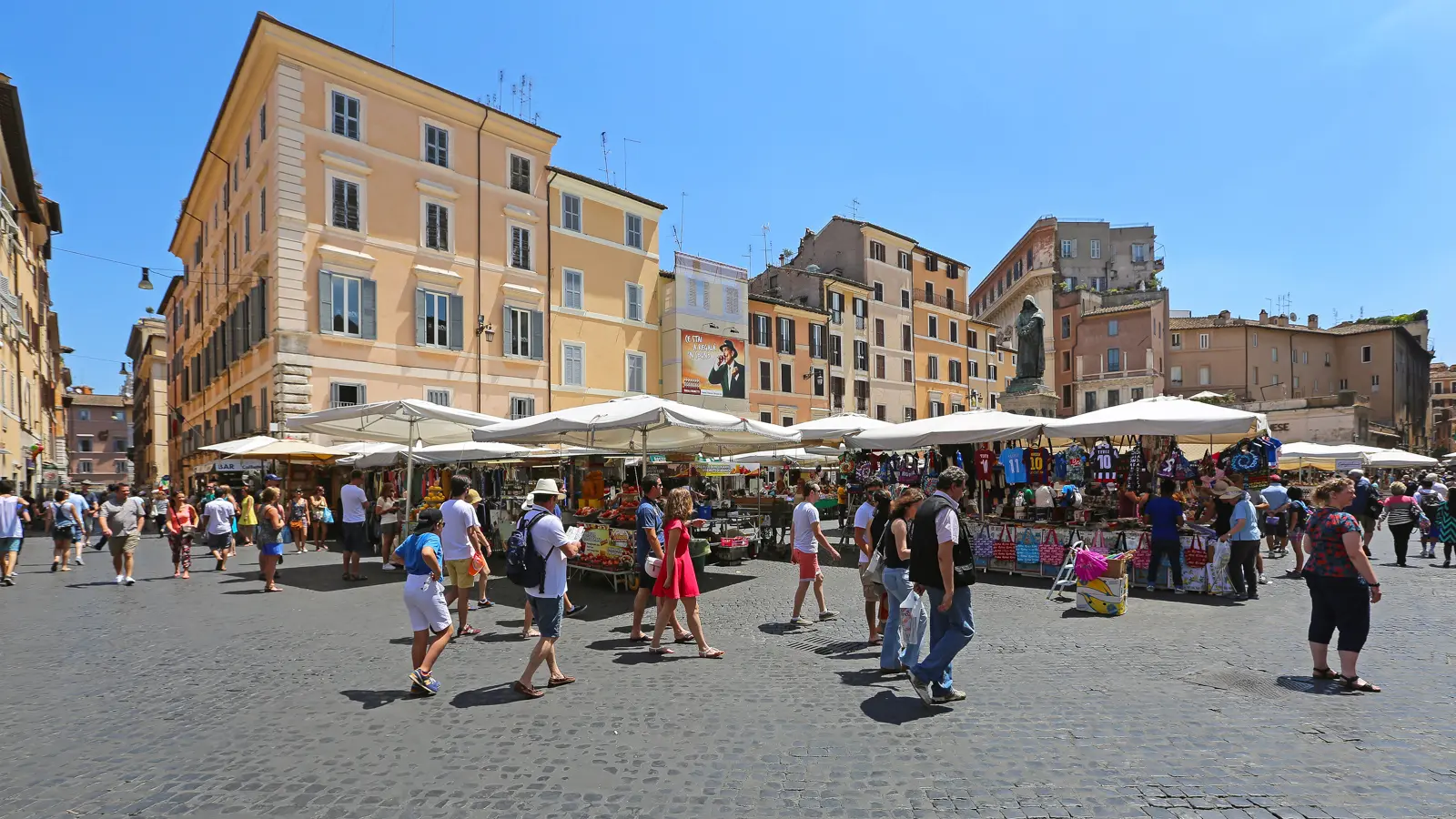 🌸 What it is: “Field of Flowers” — one of Rome’s most vibrant piazzas, a daily morning market by day and a lively nightlife hub by evening