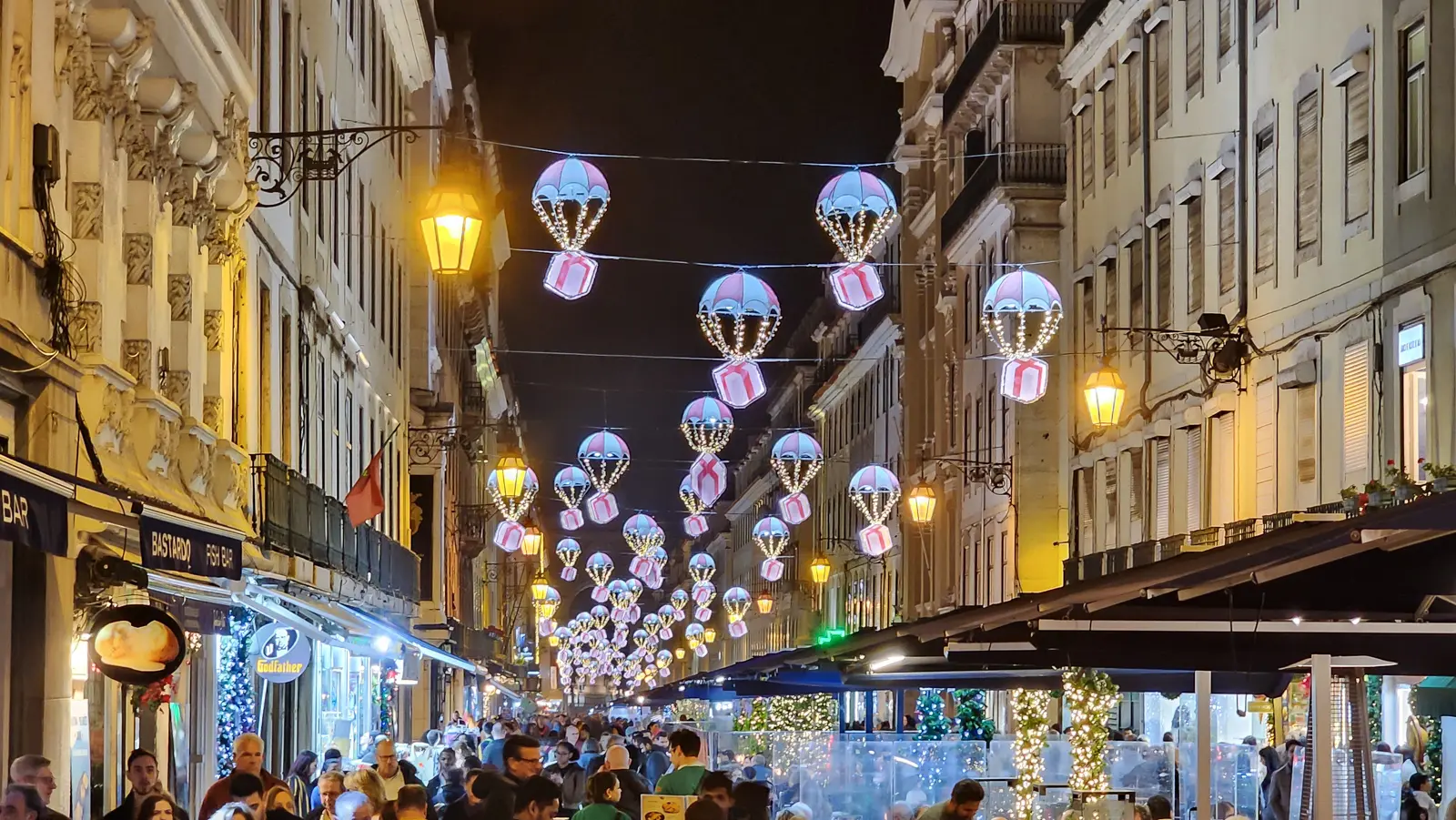 In Chiado and Baixa, Christmas feels intimate and storybook-like. Streets are lined with glowing garlands, classic lampposts wear festive wreaths, and boutique windows showcase beautiful seasonal displays. Chiado’s cafés fill with locals enjoying holiday pastries, while Baixa’s pedestrian streets buzz with street performers, children admiring decorations, and couples strolling under twinkling lights. Everywhere you turn, there’s a sense of warmth, as if the whole neighborhood has embraced the season wholeheartedly. If you love festive city walks, this area is perfect for an evening wander with your camera.