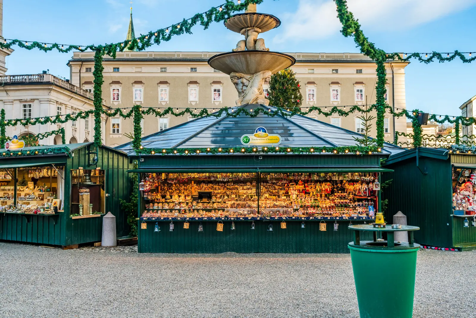 🎄 Christkindlmarkt · Roots to 1491’s “Tandlmarkt”; continuous in its current form since 1974. Around 100 stalls spread across Domplatz and Residenzplatz from late November through January 1.