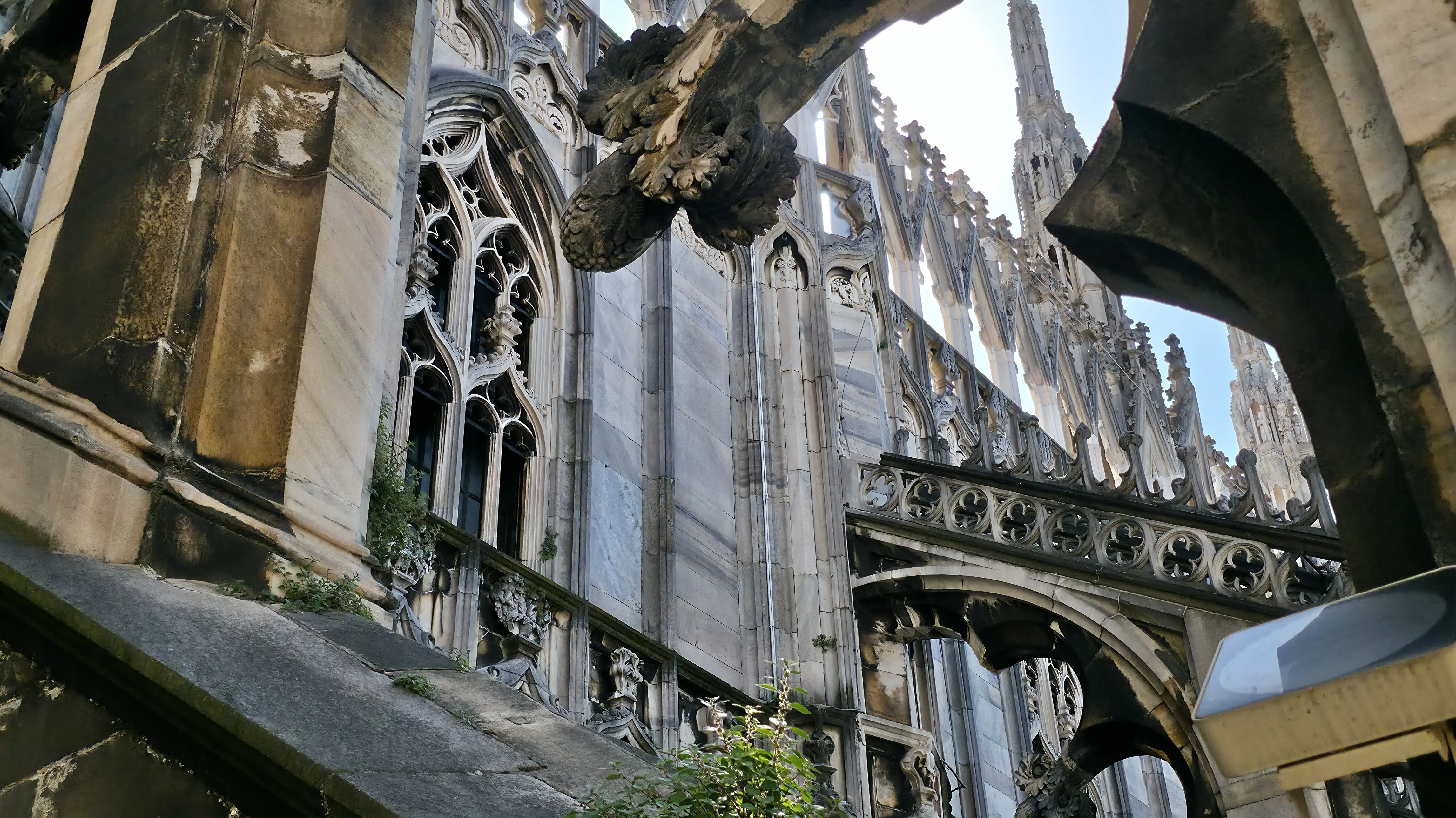 The rooftop terraces are like a marble labyrinth suspended above the city. Walking these paths, you’re surrounded by 135 spires and over 3,400 statues, many of which you can now see at eye level. These aren’t just generic decorative elements; each figure tells its own story: saints, angels, prophets, and even mythical creatures carved with incredible detail.
