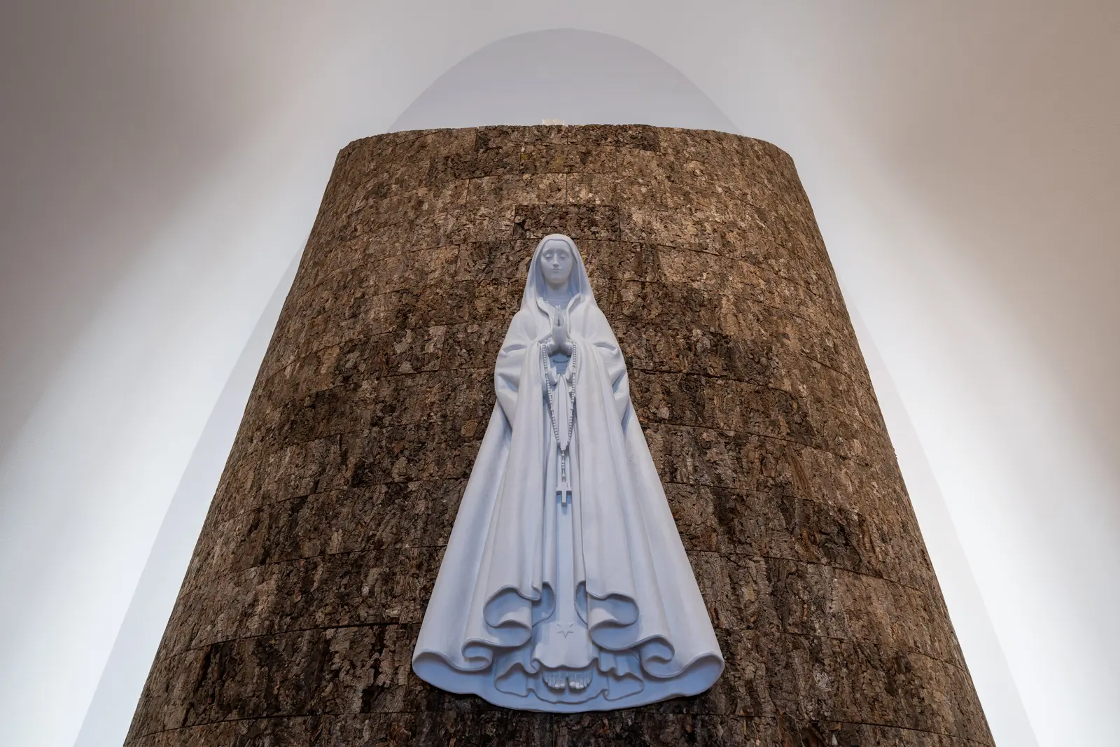 Inside the sanctuary, soft lighting and minimalist decor create a peaceful transition from the outdoor viewpoint to the small chapels and exhibition areas. The interior is quiet, reflective, and designed to encourage stillness.