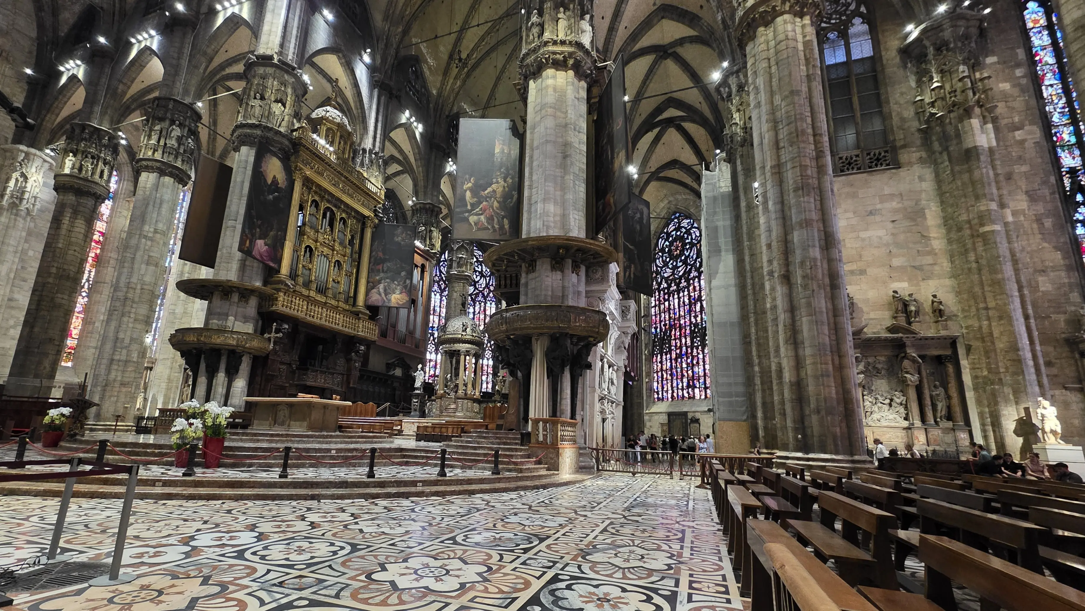 And then there’s the floor itself, a stunning work of art. Made from multicolored marble in intricate geometric patterns, it stretches like a mosaic tapestry beneath your feet. The designs are so elaborate and detailed that they almost feel three-dimensional, guiding you naturally toward the altar while reminding you that every inch of the Duomo was built to inspire awe.