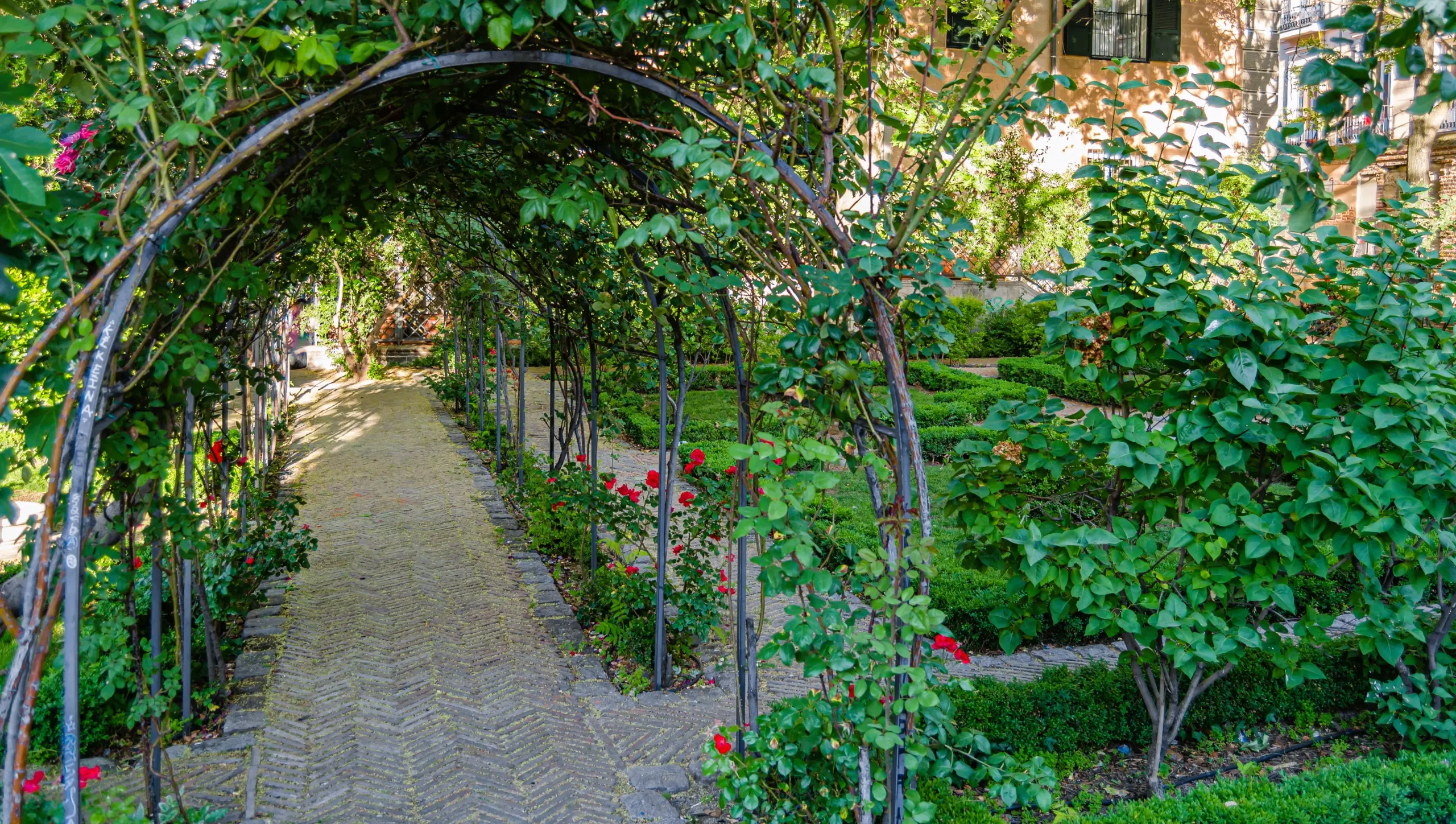 The first thing that hits you is silence, a peaceful contrast to the lively tapas bars and narrow streets just steps away. Cobbled pathways lead you through manicured boxwood hedges and geometric flower beds. The scent of jasmine drifts in the air, and the soft crunch of gravel is the only sound beneath your feet.