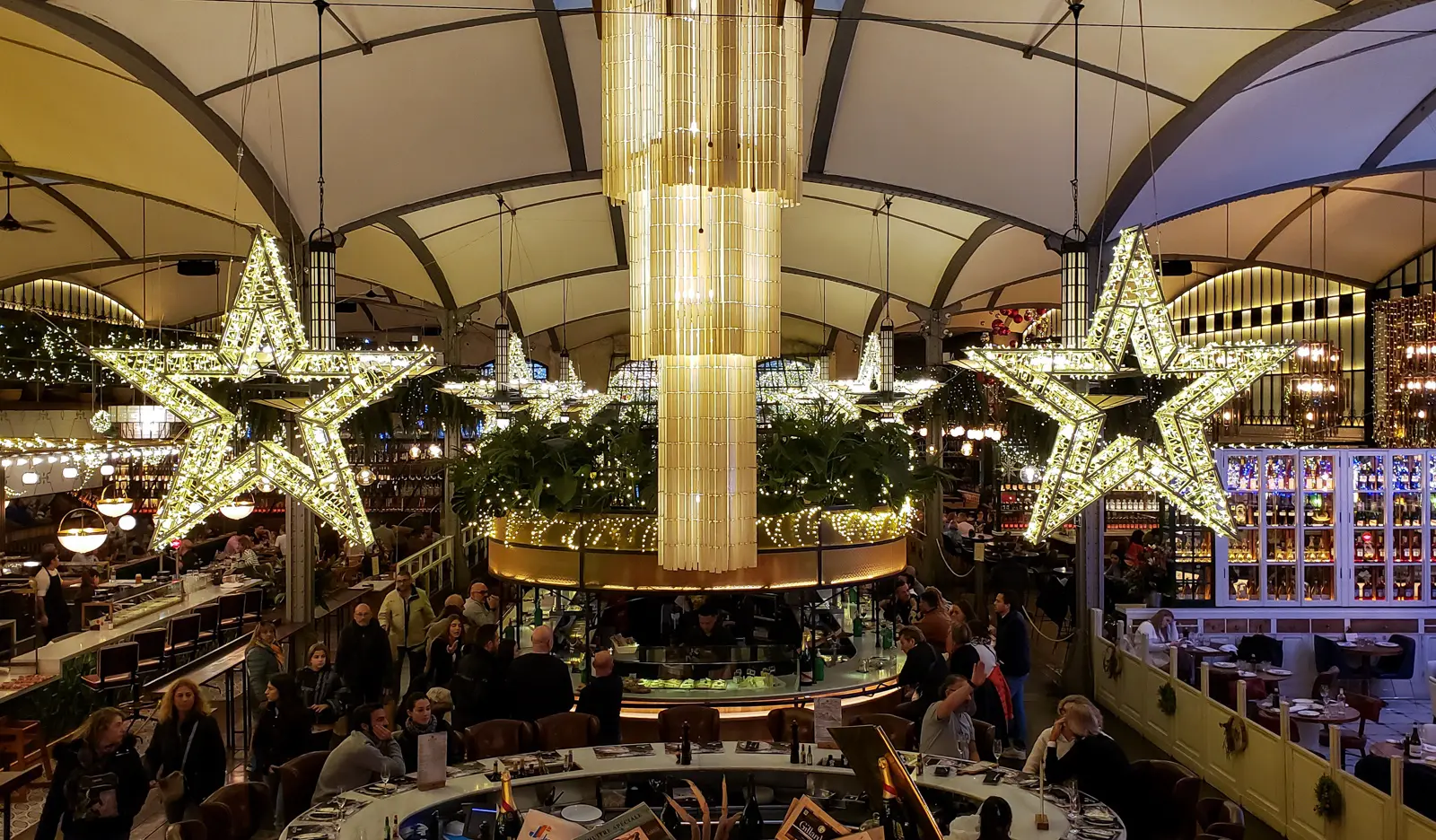 📸 Photo tip: Arrive before 8 p.m. to capture the warm light through the glass roof; the cascade chandelier above the central Cocktail Bar is the signature shot