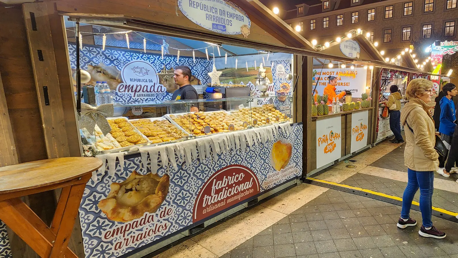 Food is the heart of this festival, and every stall seems to offer something tempting. Warm sandwiches overflowing with Portuguese cheeses and Iberian ham, steaming bowls of bacalhau-based delights, festive soups, fried Christmas treats, artisanal chocolates, spice-infused desserts, and cups of hot chocolate or ginja to warm your hands. You’ll also find: