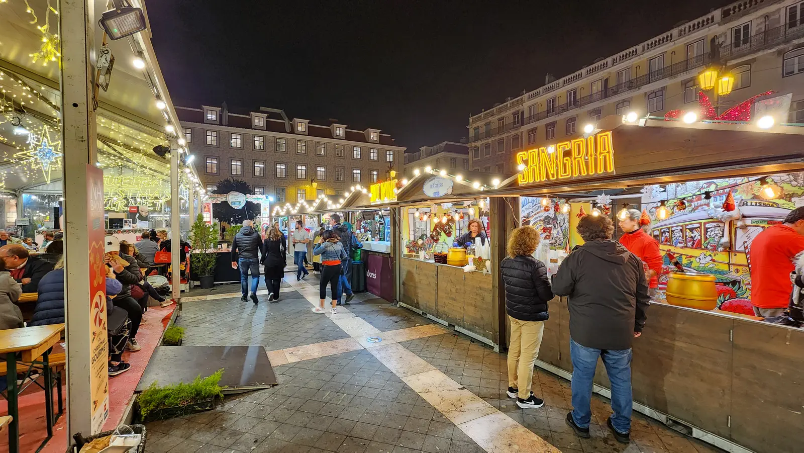 Music plays, people chat around high tables, cups of hot drinks steam in the cool night air, and the overall vibe is festive but refined, perfect for food lovers who want something a little more elevated than a traditional holiday market. It’s also wonderfully central, making it easy to wander between Figueira Christmas Gourmet, the Rossio Christmas Market, and the nearby streets of Baixa filled with holiday lights.