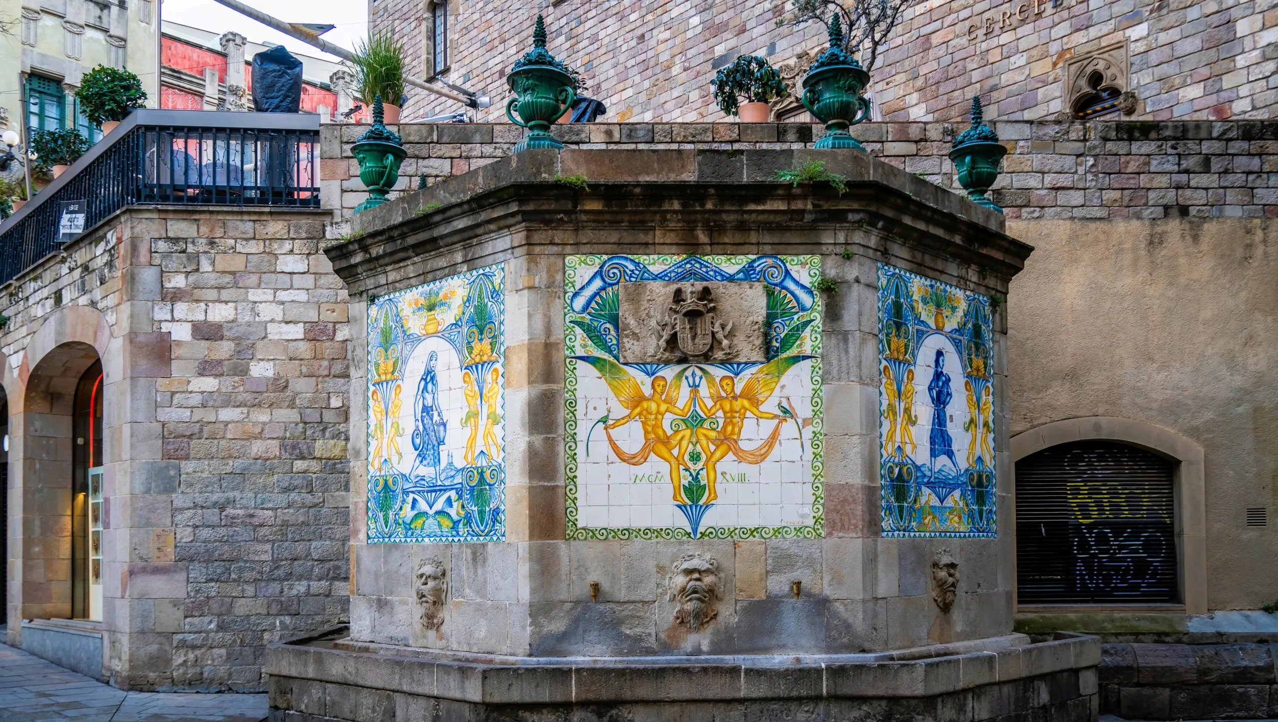 - Restored Character: The fountain has been renovated over the centuries, notably in 1918 when colorful ceramic tiles were added by artist Josep Aragay, blending its medieval heritage with later artistic touches.