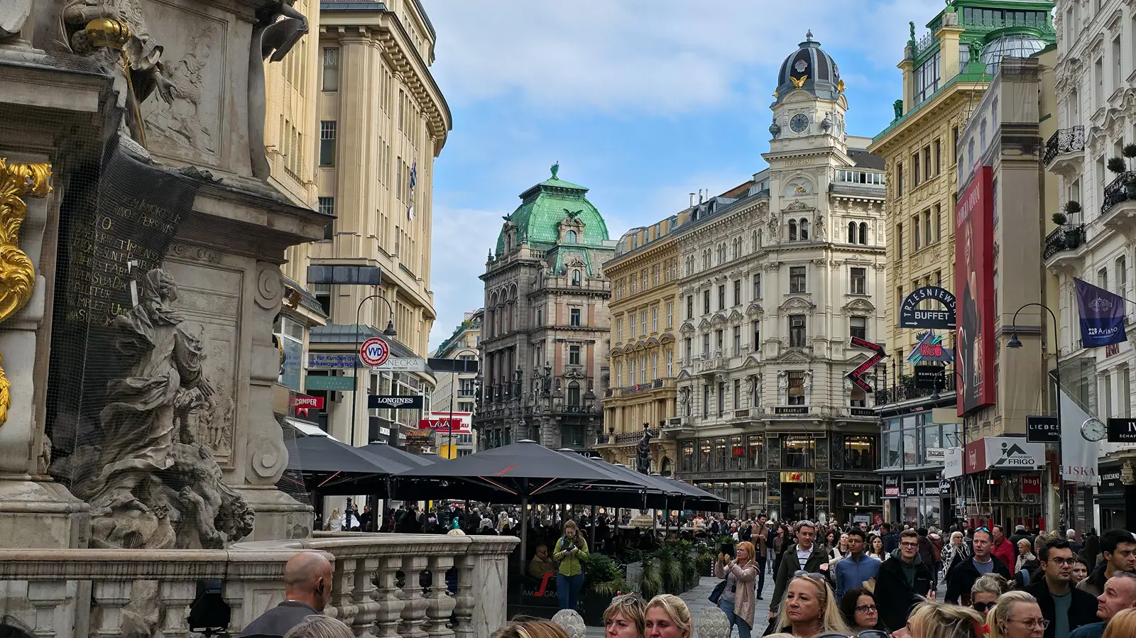 💡 Tip: Walk Graben twice — once during the day for the architecture and café culture, and once at night (especially during the holidays) when the chandeliers turn the street into a ballroom