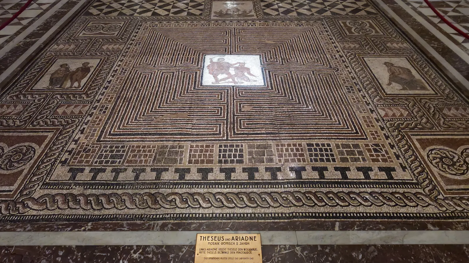 🧩 Don’t miss: The Theseus mosaic from Salzburg, depicting the labyrinth and Ariadne’s red thread · the Sarcophagus with Fighting Amazons · the Brygos Cup (Greek vase masterpiece) · the Magdalensberg Youth (bronze) · the Votive Statue of a Man from Cyprus (larger than life-size)