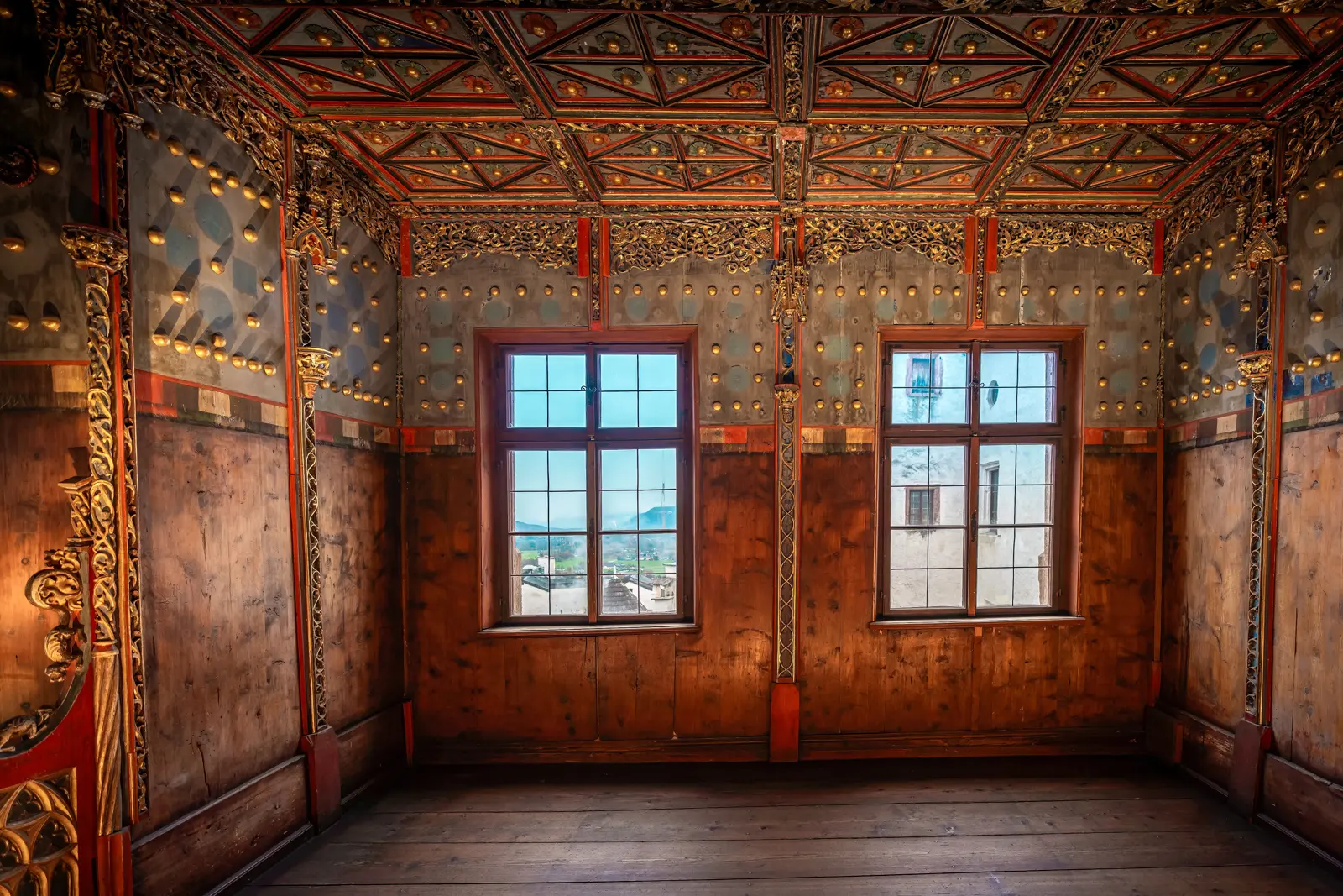 The State Rooms provide a striking contrast to the more austere areas of the fortress. The Golden Hall and the Golden Chamber are the most celebrated of these spaces, commissioned by Archbishop Leonhard von Keutschach around 1500 and featuring intricate late Gothic wood carvings, gilded decorations, and a beautifully crafted ceramic tile stove from 1501, widely regarded as a remarkable example of its kind. Richly composed and carefully preserved, these rooms offer insight into the ceremonial and residential aspects of life within the fortress, a reminder that the space was not solely defined by defence, but also by authority, culture, and representation.