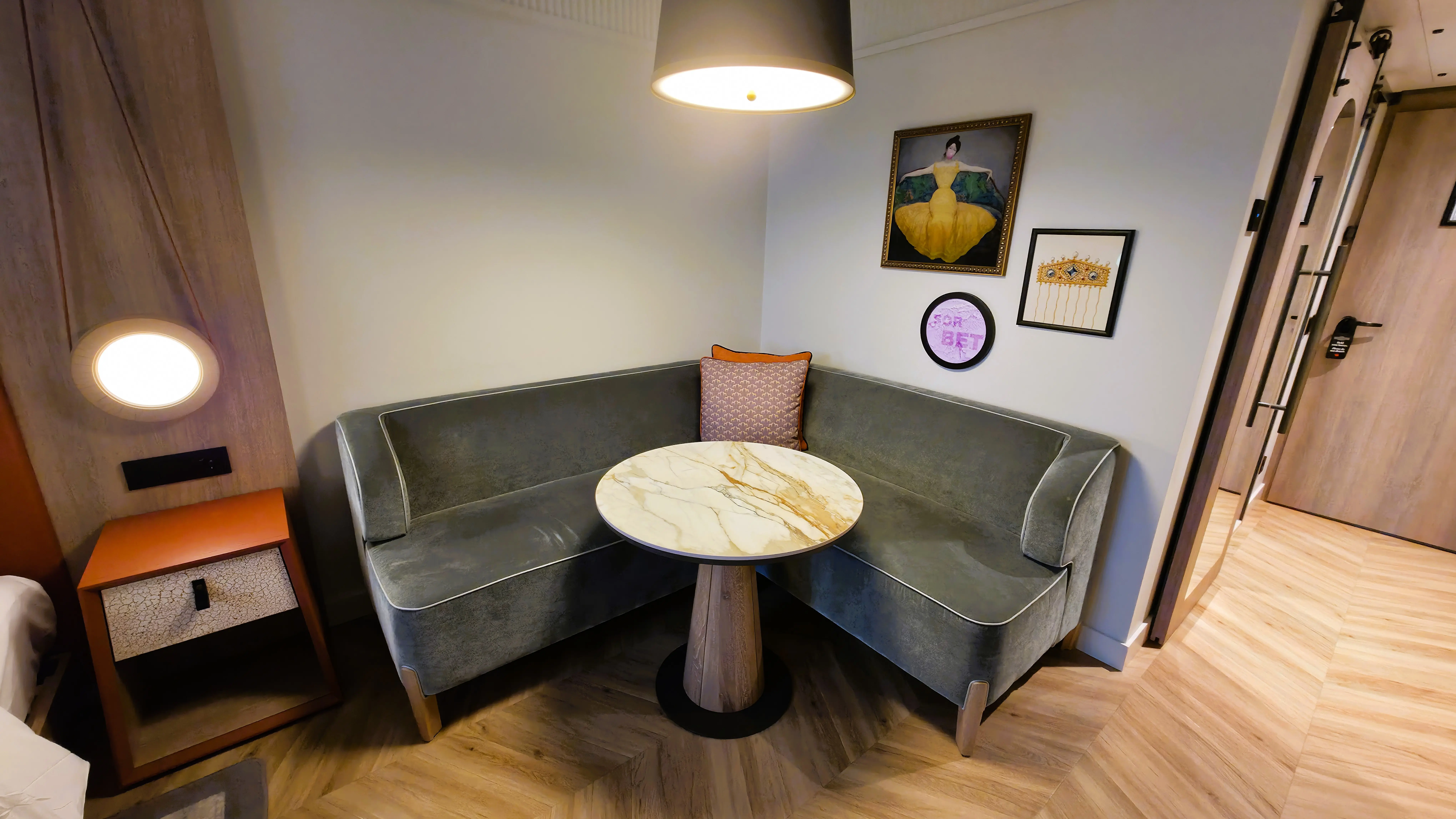 Lighting plays a crucial role in shaping the mood. Rather than dramatic statements, the hotel favors diffused, ambient light that softens the space and highlights architectural curves. This creates an atmosphere that feels welcoming at all hours of the day, whether you’re arriving in the morning light or returning after an evening out in Vienna.