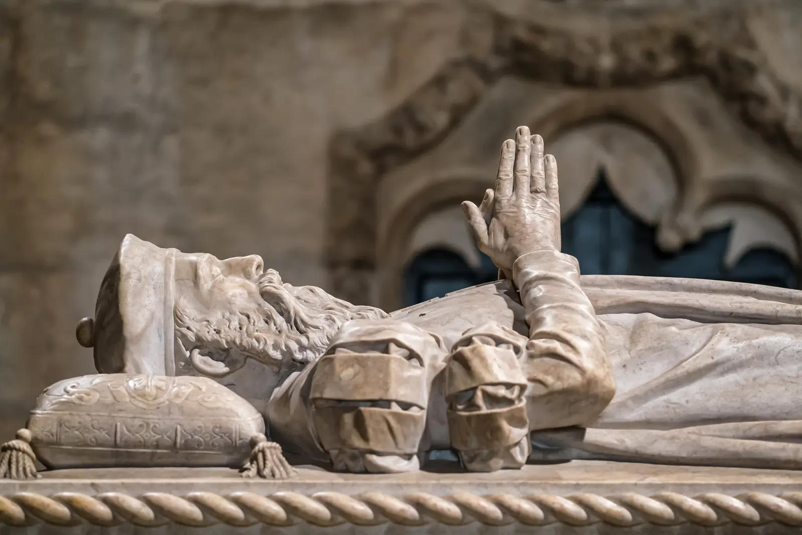 This is also where you’ll find the tomb of Vasco da Gama, resting beneath a beautifully carved effigy that honours his voyage to India. Nearby lies the poet Luís de Camões, author of The Lusiads, a masterpiece of Portuguese literature celebrating the nation’s maritime achievements.