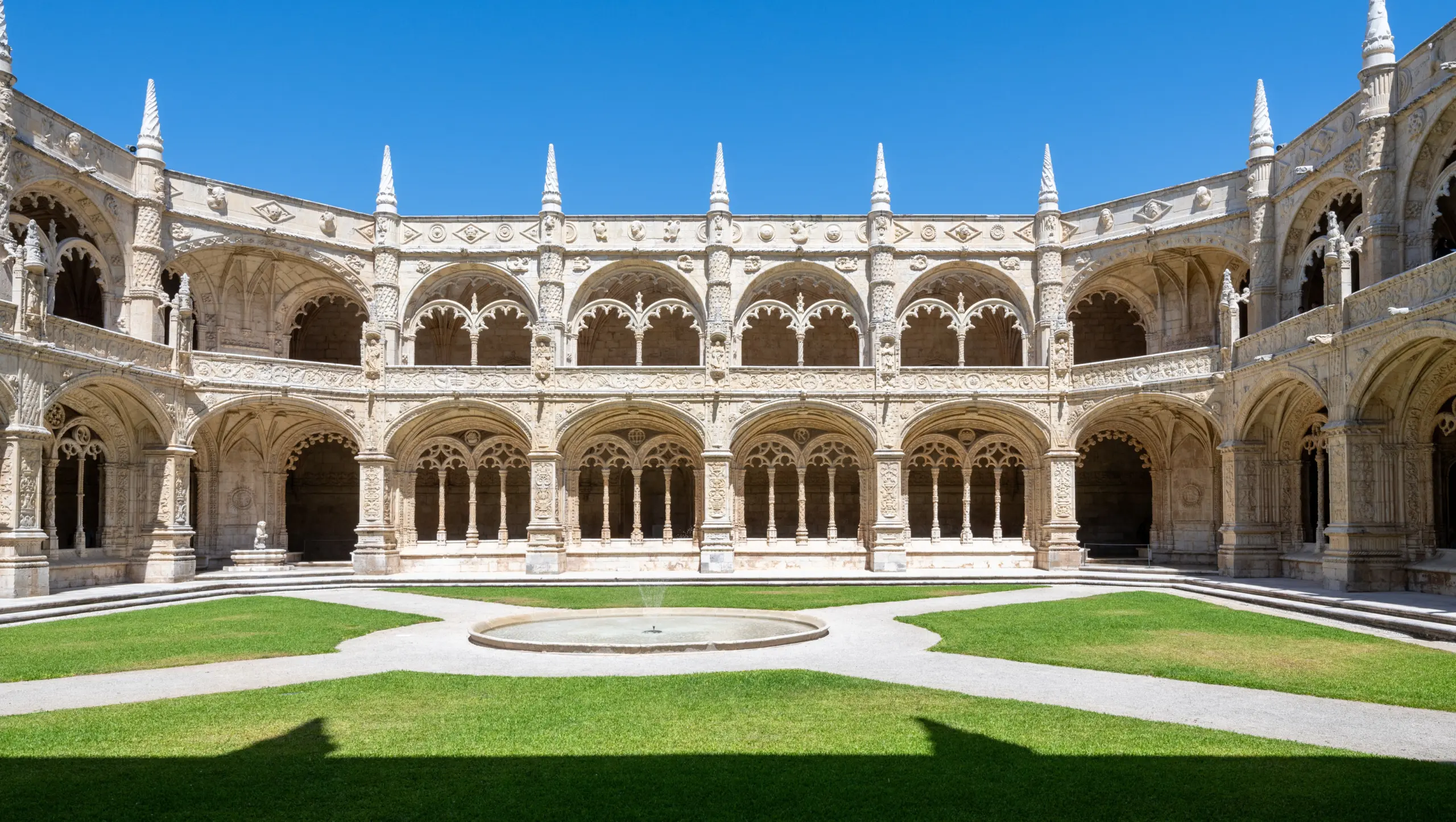 Jerónimos Monastery is one of the finest examples of Manueline architecture, a uniquely Portuguese style that flourished in the early 16th century. It blends Gothic structure with Renaissance harmony and maritime symbols – ropes, anchors, coral, shells, armillary spheres, navigational instruments – all carved with astonishing delicacy.