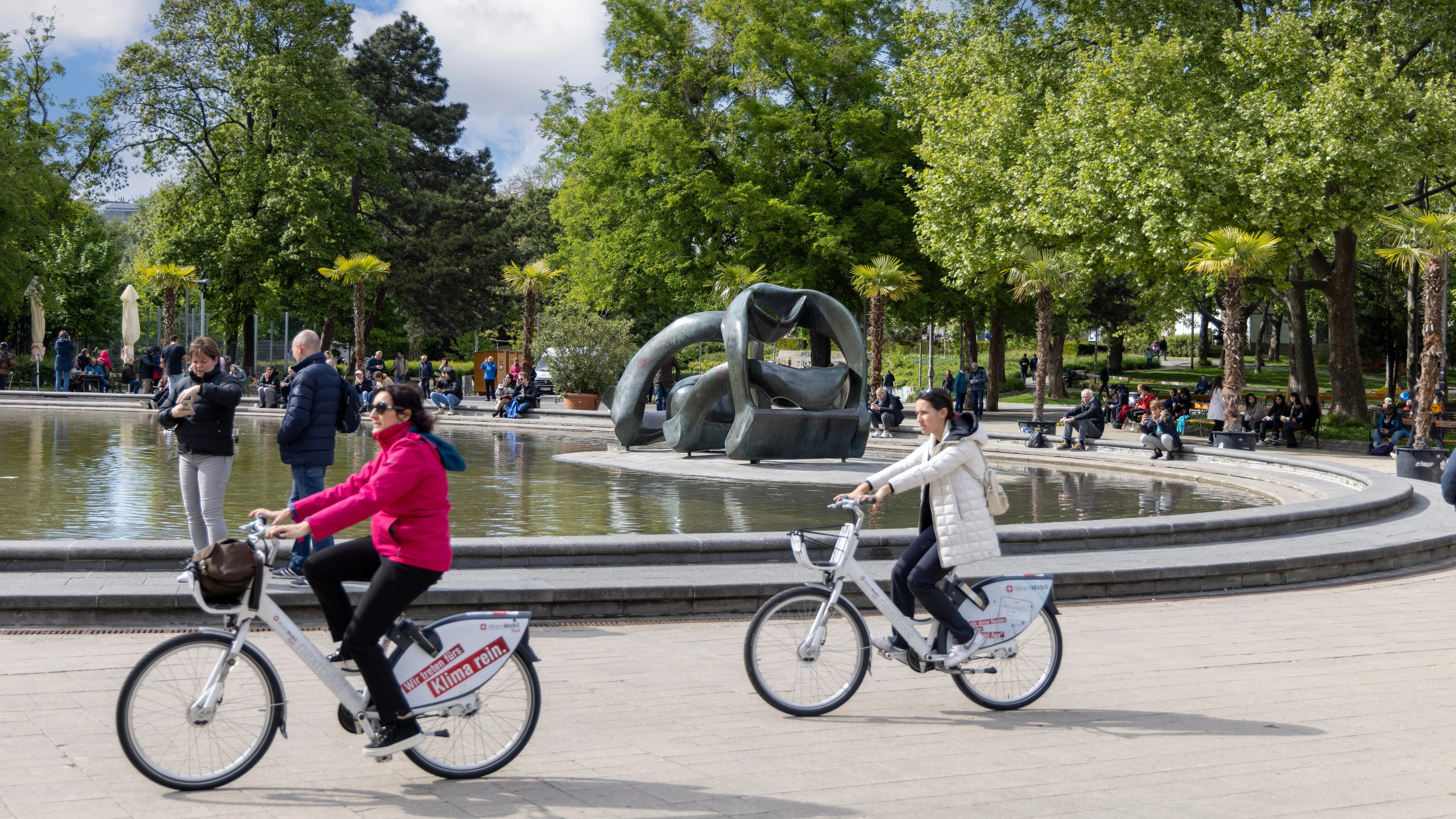 One of Karlsplatz’s defining features is the long reflecting pool that stretches toward Karlskirche. The water doesn’t dramatize the church; it steadies it. Reflections shift with the light, weather, and movement of people nearby, reminding you that the square is alive, not staged. Rising quietly from the pool, Henry Moore’s bronze sculpture Hill Arches introduces a modern counterpoint – abstract, grounded, and deliberately open to interpretation. On sunny days, people sit along the edges with books, coffee cups, or nothing at all. Children move freely. Visitors linger without needing an agenda. The openness encourages stillness without asking for silence. Karlsplatz feels generous – architecturally and emotionally.