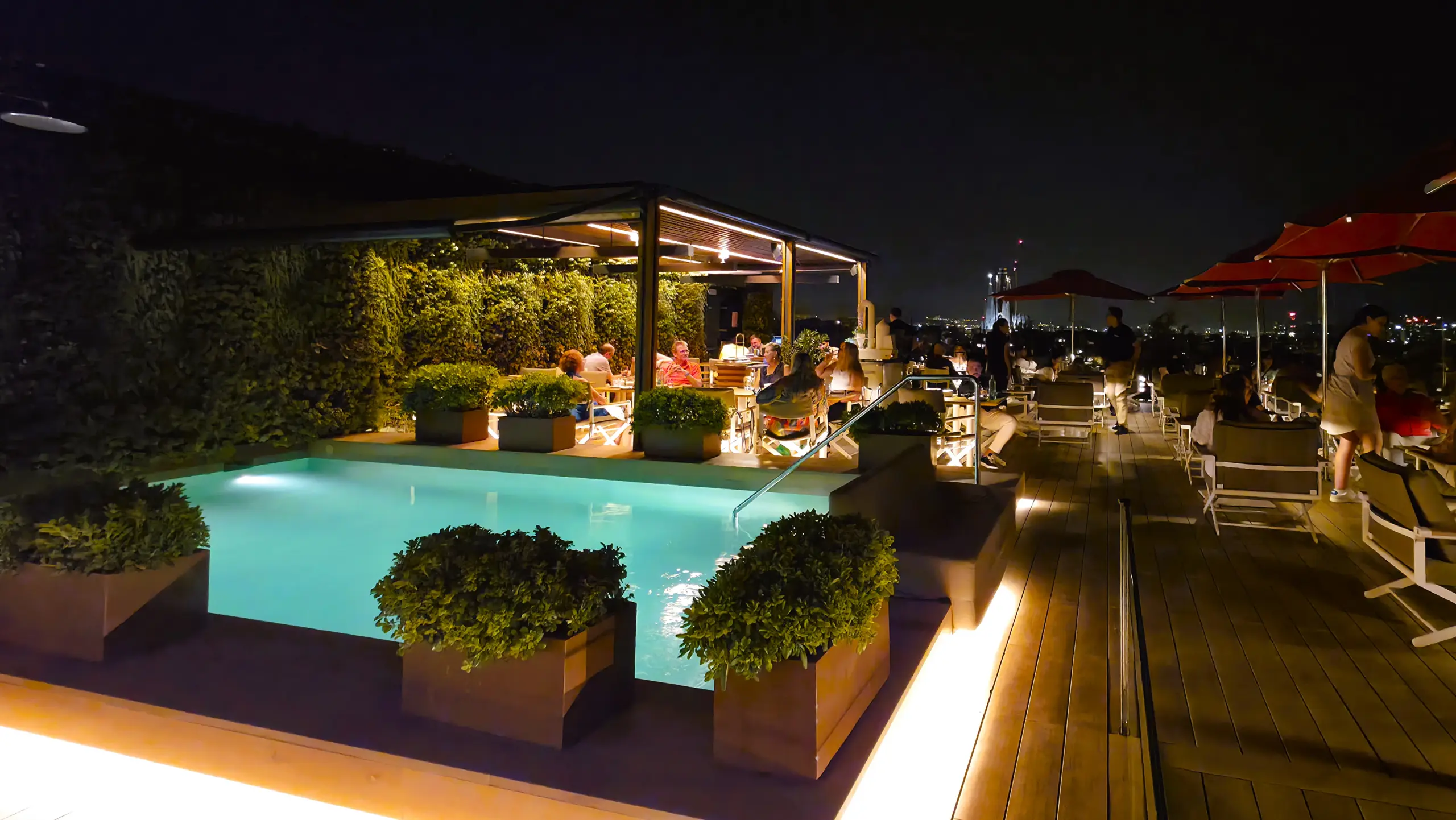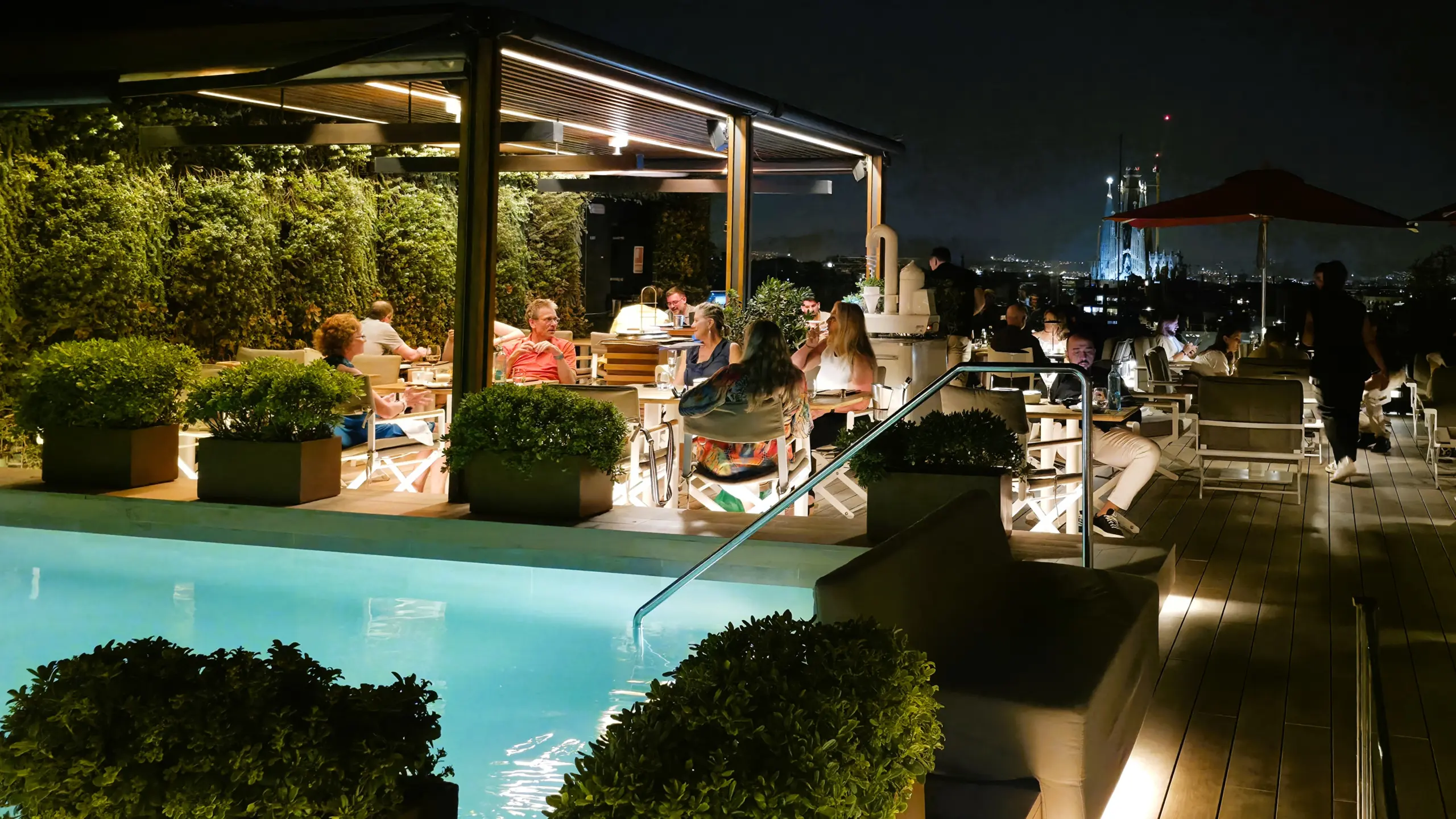 By night, the energy shifts. Soft, amber lighting warms the terrace; the skyline sparkles below; and the rooftop takes on a seductive, almost cinematic glow. Barcelona becomes a tapestry of lights, and the Sagrada Família looks even more mystical illuminated from afar. The music, the lighting, the elegance, it all comes together in a way that feels intimate and refined.