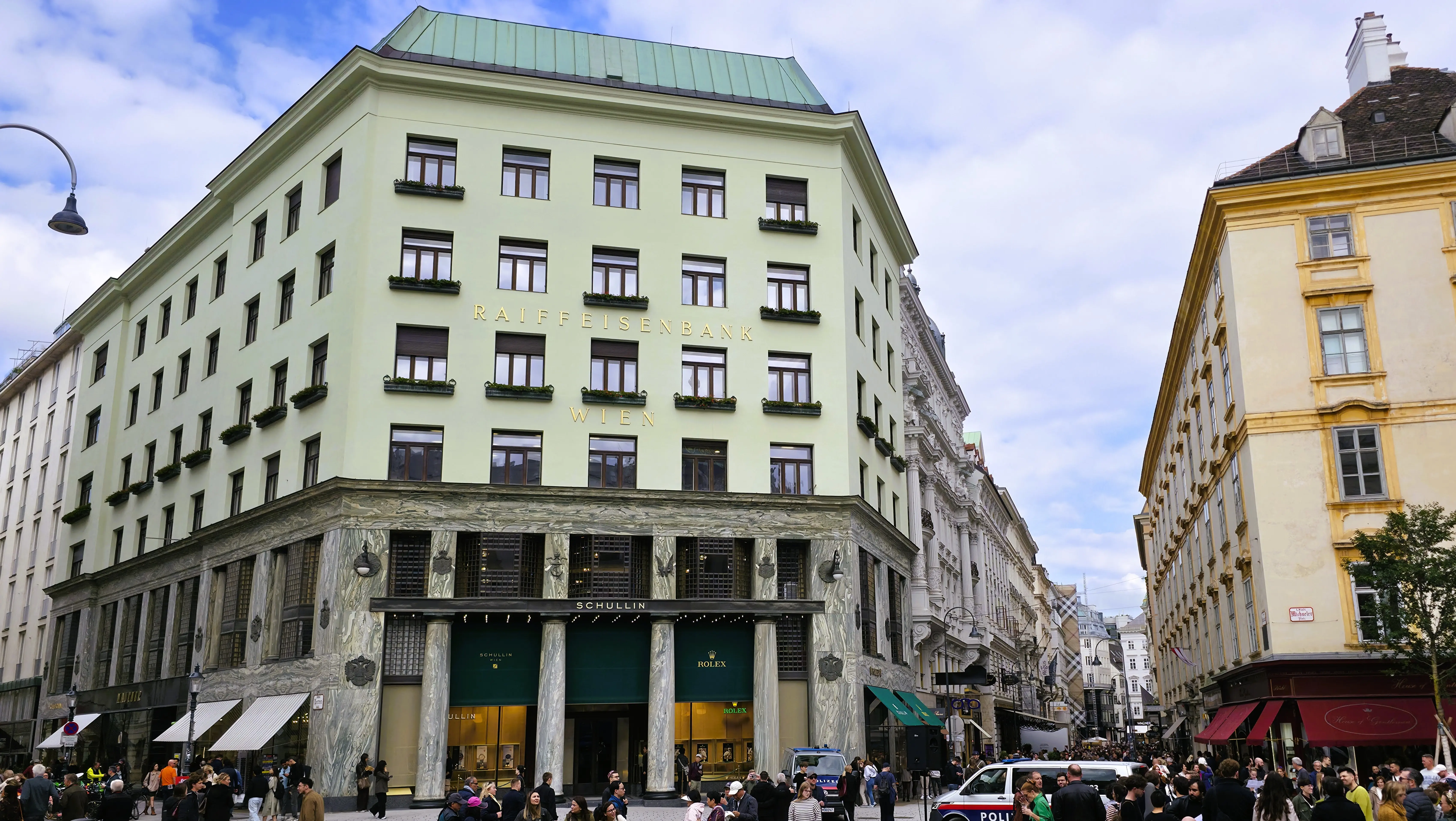 🏛️ Four Layers of History: Roman ruins (1st century AD), St. Michael’s Church (1220), Hofburg’s Michaelertor, Adolf Loos’s Looshaus (1912)
