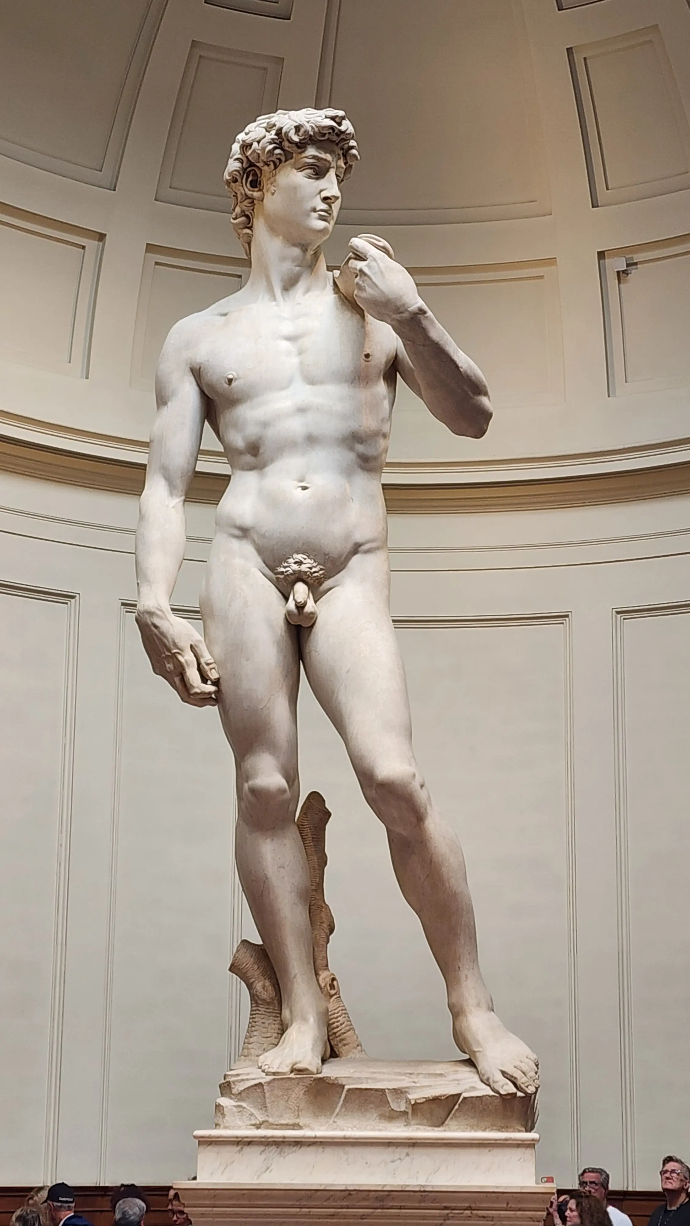 What strikes you most about David is its incredible realism. Every sinew, muscle, and vein reflects Michelangelo’s deep understanding of human anatomy. The subtle tilt of David’s head and the intense concentration in his eyes create a narrative tension – you can almost feel his readiness to confront Goliath. His confident yet calm stance, known as contrapposto, was revolutionary, giving the statue a lifelike dynamism that continues to captivate audiences.
