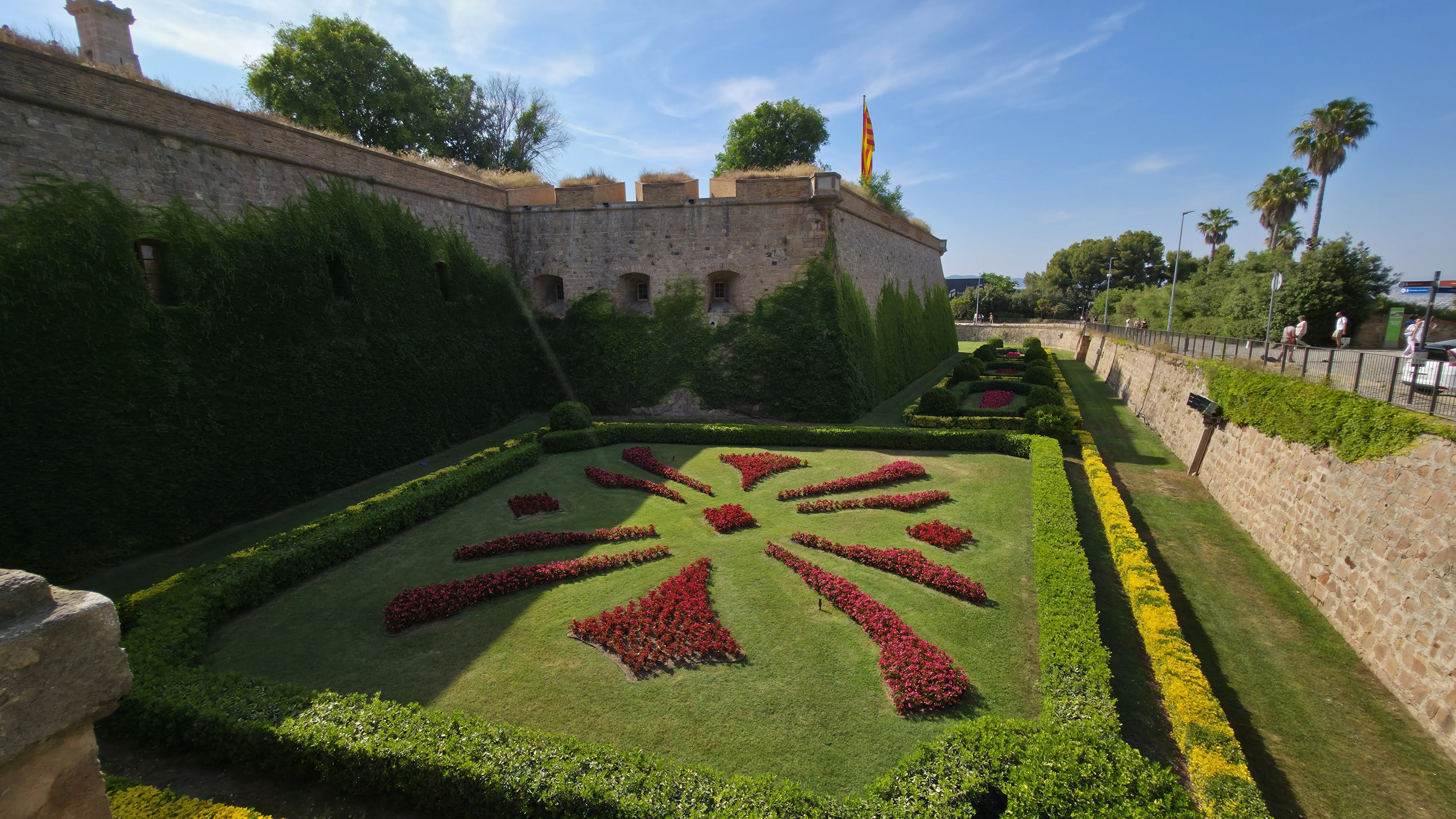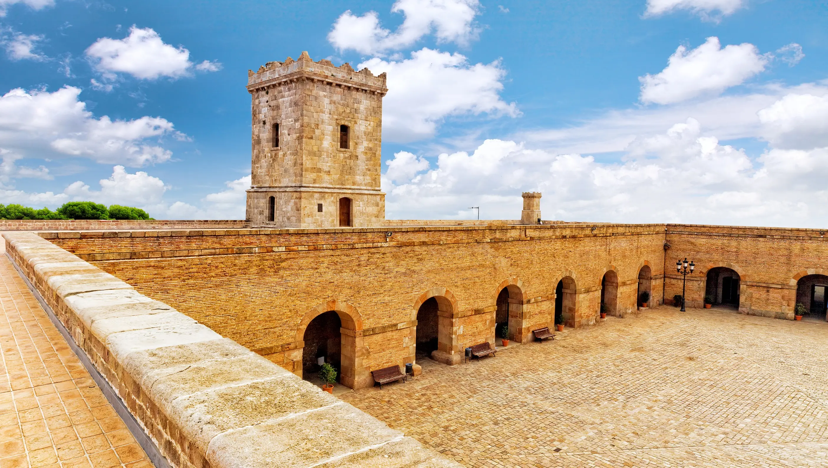 The heart of the fortress opens into a vast courtyard framed by archways. The Catalan flag waves proudly from the central tower, a poignant symbol of strength, identity, and peace. Sometimes, local musicians play softly here, and their melodies echo beautifully against the old stone. I loved standing at the center of the courtyard, imagining the centuries of footsteps that had crossed the same space – soldiers, prisoners, and now travelers like me.
