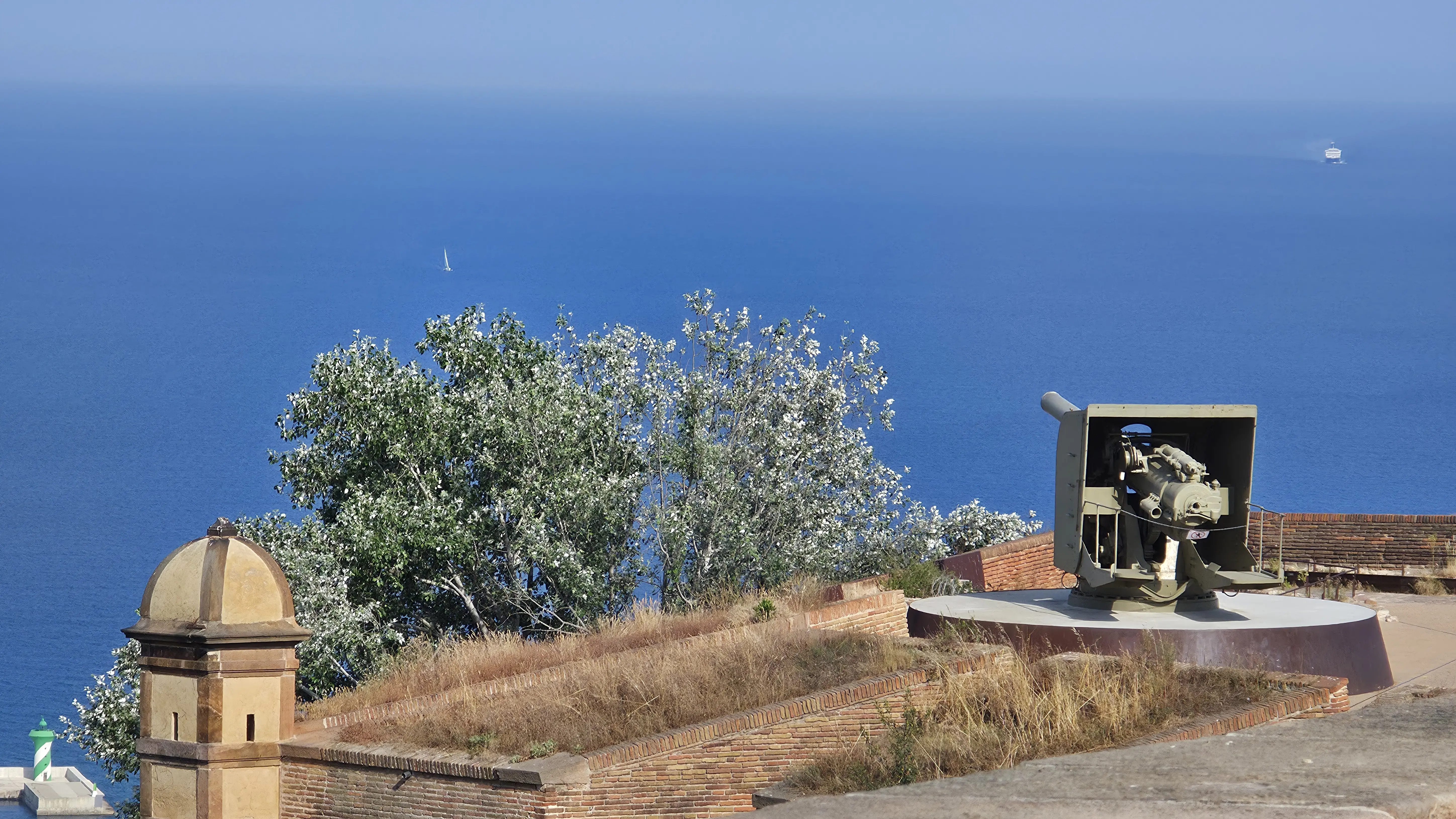 Along the outer walls, the castle’s cannons still stand, pointed toward the sea. They’re no longer instruments of war but silent sentinels – perfect for reflection and, of course, photos. The view from the southeast bastion is especially breathtaking, where the deep blue of the Mediterranean meets the sky. It’s humbling to realize that these same towers once represented control, and now they simply frame one of the most peaceful views in Barcelona.