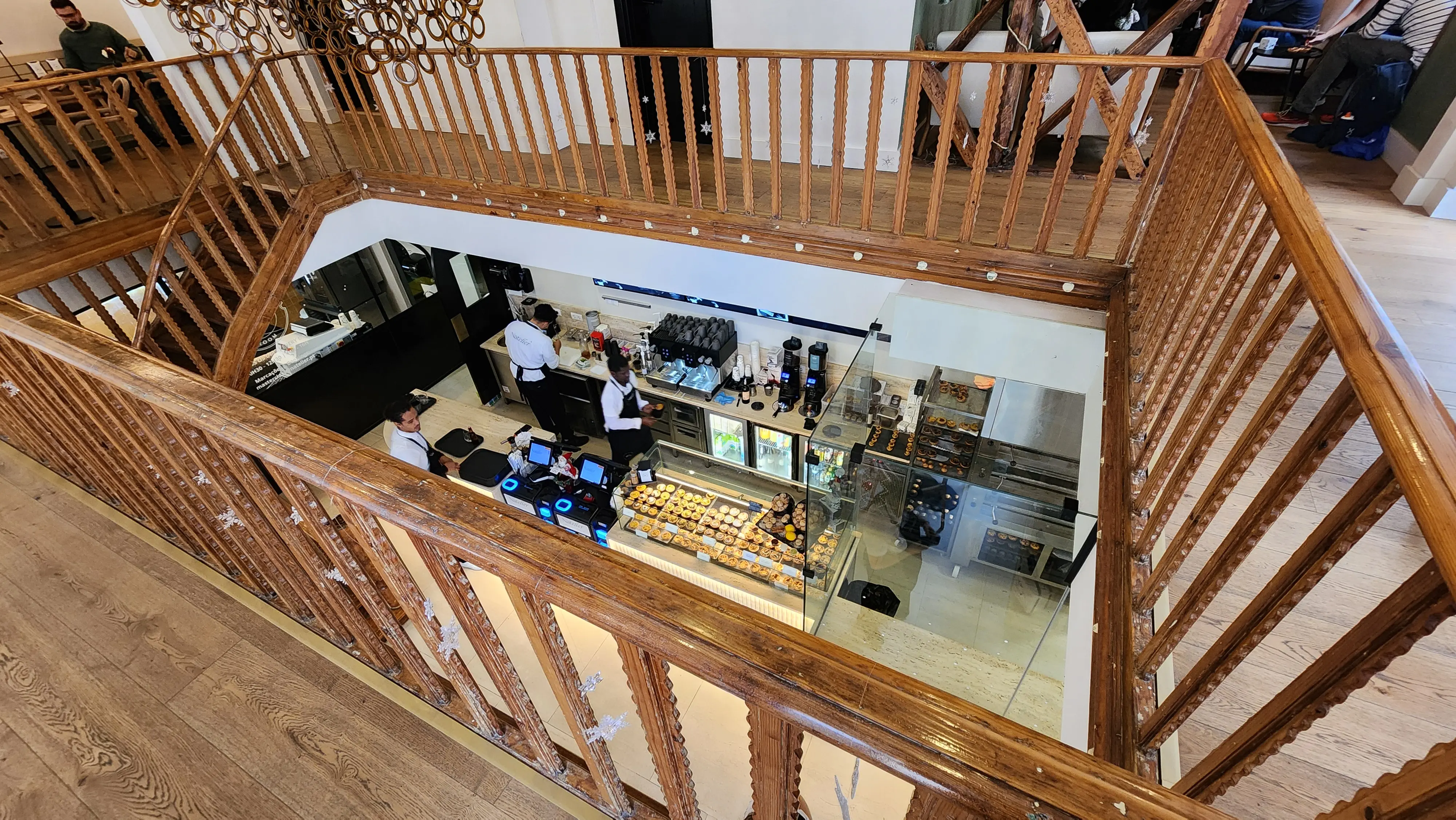 Spread across two beautifully curated floors, the café features a clever use of natural light and space. Downstairs, the open pastry counter offers a mouthwatering display, while upstairs—where I sat—the ambiance shifts into something softer and more serene. Large windows look out onto the street below, offering a peaceful perch to enjoy your coffee and watch the world go by.
