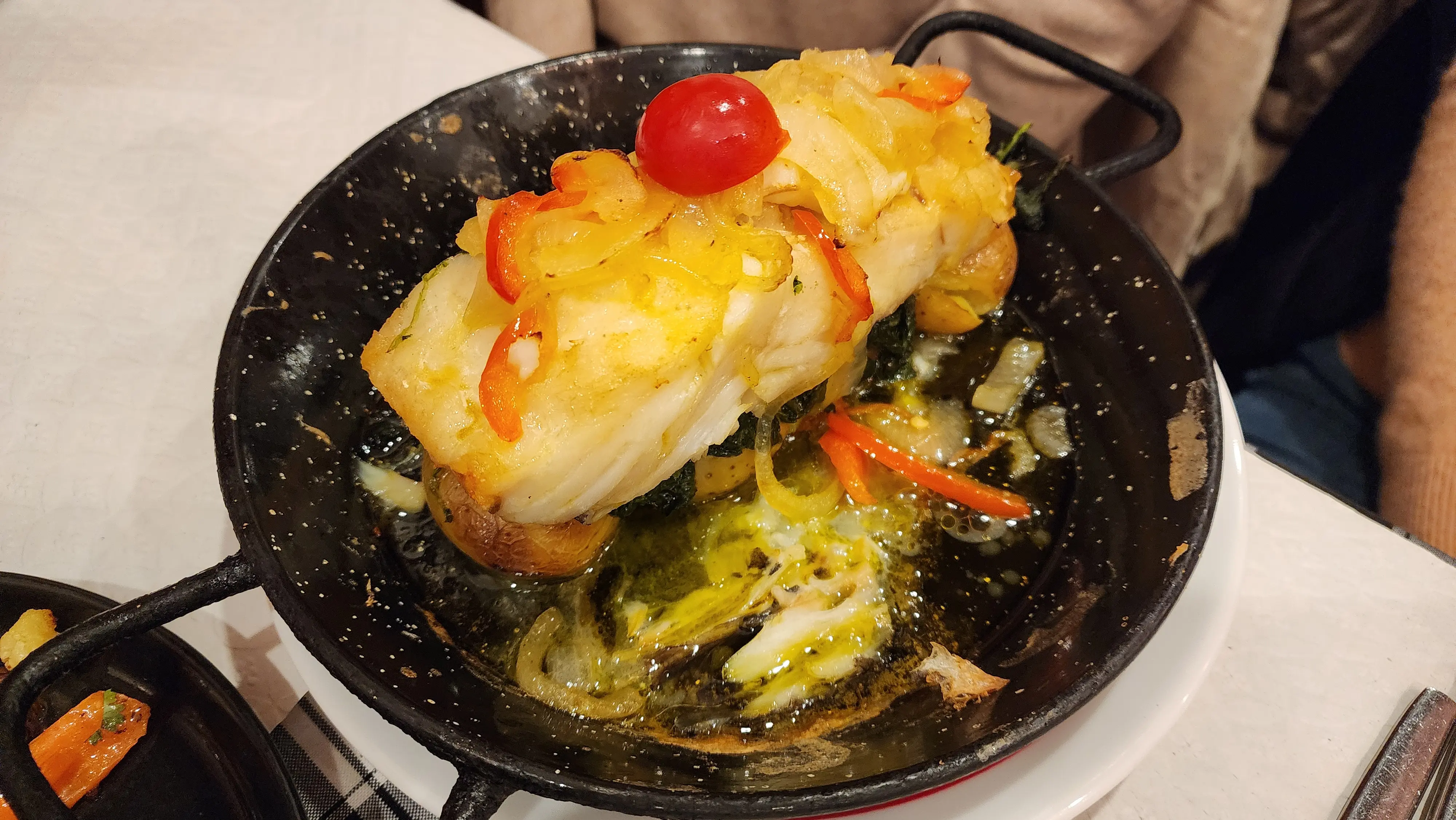 🐟 Bacalhau à Lagareiro: This dish always feels like a warm hug. The salt cod was rich, flaky, and packed with depth, served with caramelized onions and olive oil over soft, roasted potatoes. Every bite was comforting and full of soul.