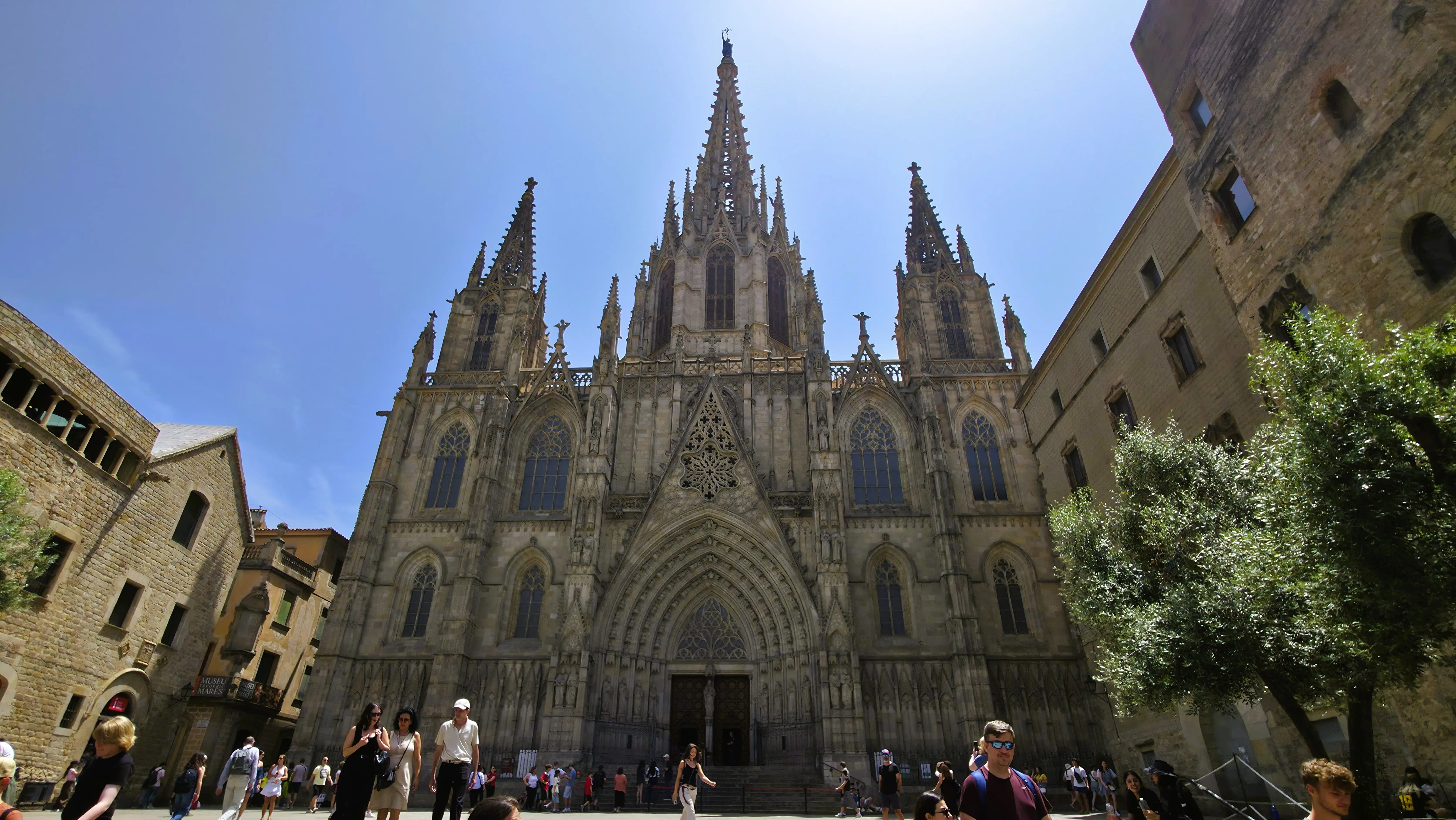 Dominating the square is the breathtaking Barcelona Cathedral. Though its Gothic interior dates back to the 13th–15th centuries, the neo-Gothic façade we see today was completed in the late 19th century. With its pointed arches, lace-like spires, and carved statues of saints, it creates a stage set that makes the square feel almost theatrical.