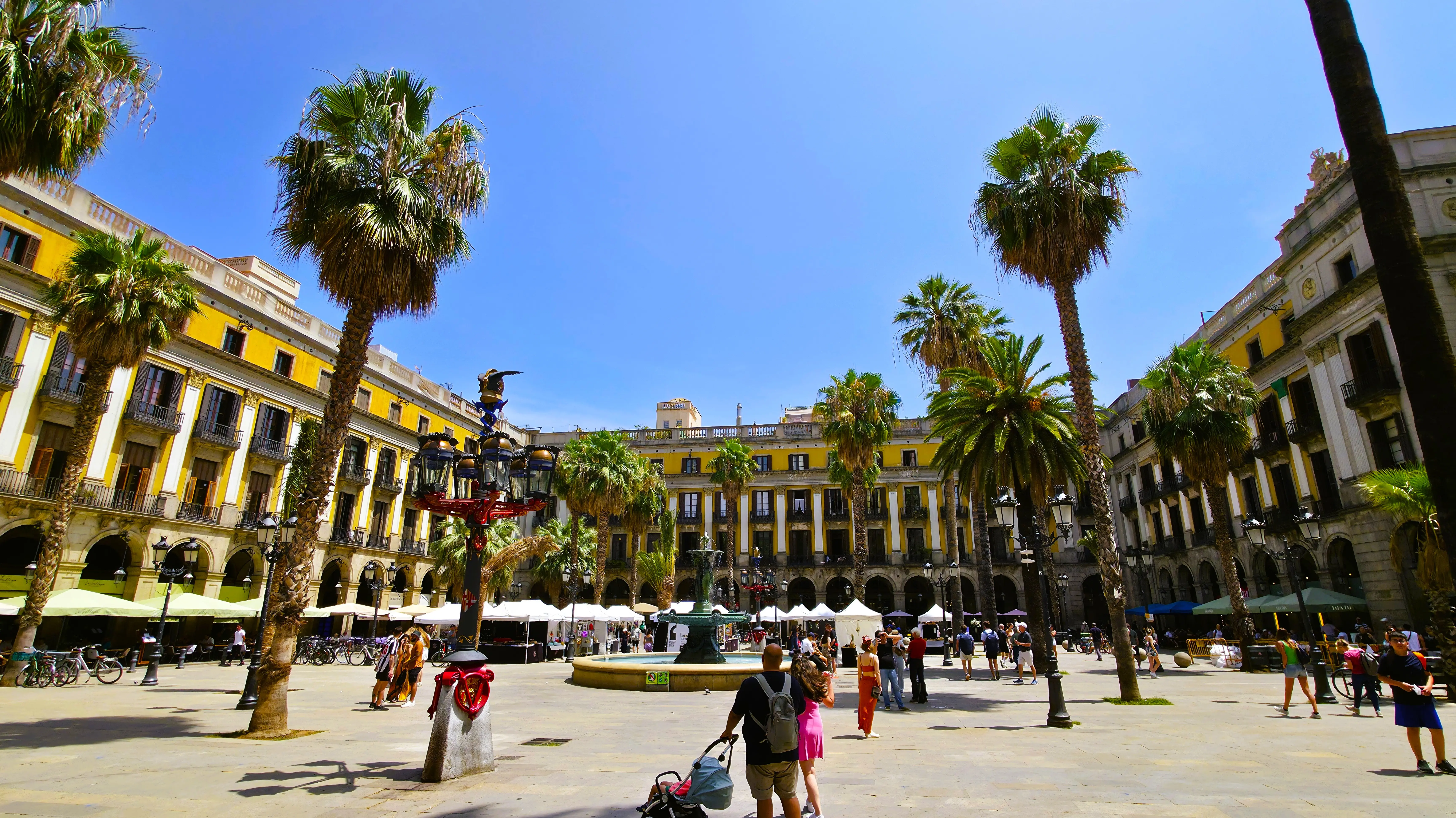 Plaça Reial stands out because of its symmetry and unity. Unlike Barcelona’s eclectic mix of styles, this square feels orderly and balanced: