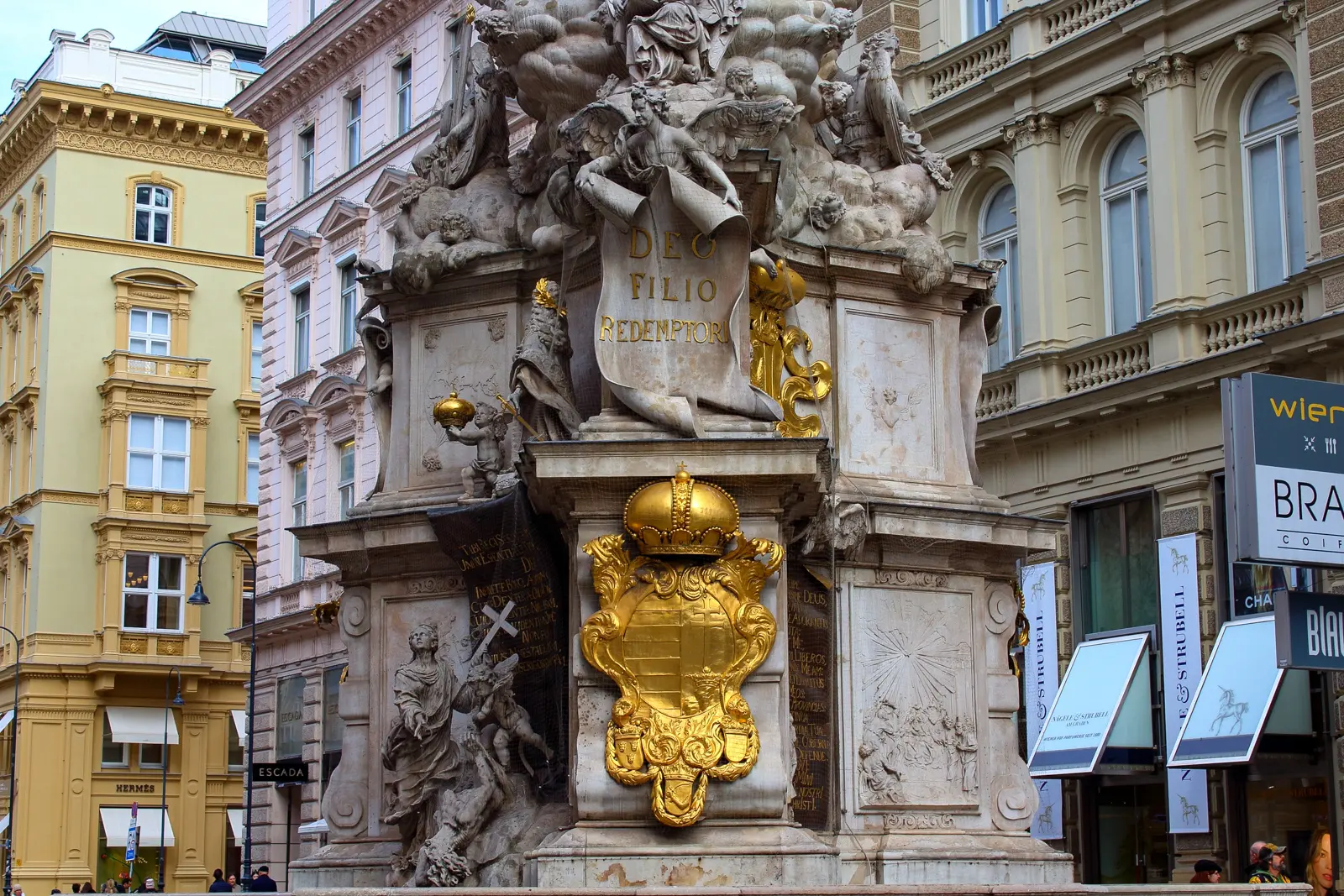 Beyond its religious symbolism, the Plague Column also communicates something else: power. Embedded within its design are the coats of arms of the Habsburg territories, including those of the Archduchy of Austria and the Kingdom of Hungary. These elements are subtle, but significant. They situate the monument not only within a spiritual narrative, but within a political one as well.