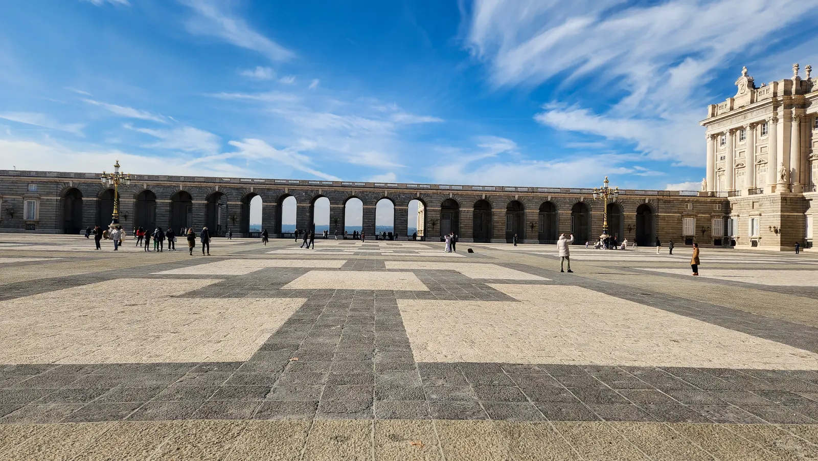 What greets visitors today was designed in 1892 by architect Enrique María Repullés, replacing earlier, unrealized proposals such as the 1879 plan by Narciso Pascual Colomer. The resulting design is harmonious and intentional: broad stone paving, balanced geometric patterns, and a sweeping visual axis between the palace and the cathedral create a unique sense of openness. Standing here, you truly feel the plaza acting as a ceremonial threshold, a transition between the sovereign power of the Royal Palace and the spiritual presence of the Almudena Cathedral.
