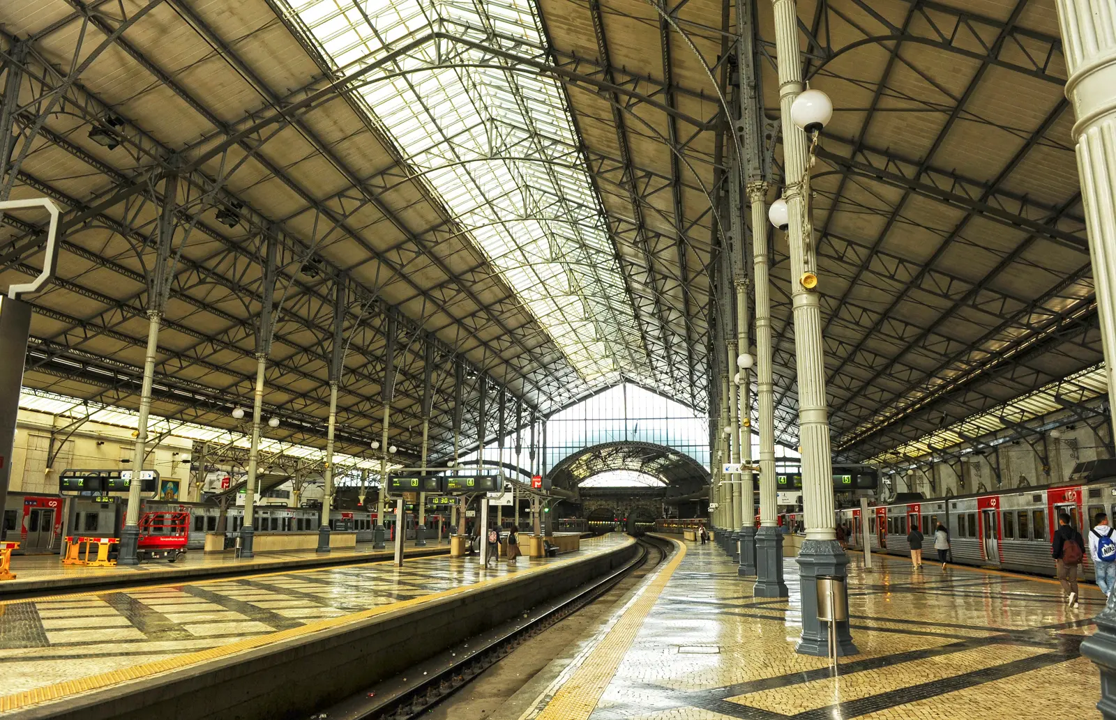Today, Rossio Station remains the main gateway to Sintra, one of Portugal’s most magical destinations, which means the station is always buzzing with travelers heading toward palaces, gardens, and mountain air. Yet despite its constant movement, Rossio still has a timeless feel. Trains rumble gently. Sunlight filters across the platforms. And the high iron roof, industrial and elegant, creates a beautiful contrast with the ornate façade outside.