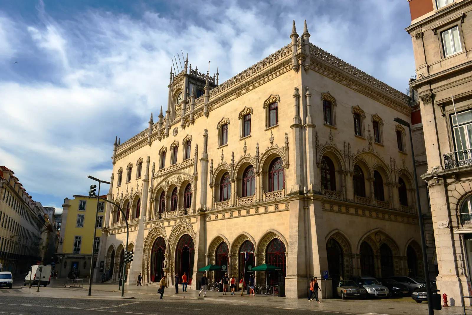 Rossio Station opened in 1890, during a moment of architectural revival when Portugal rediscovered its love for the ornate, maritime-inspired style of the Age of Discoveries. The result is one of Lisbon’s most iconic façades: a sweeping Neo-Manueline design filled with arches, flourishes, symbolism, and pure theatrical beauty.