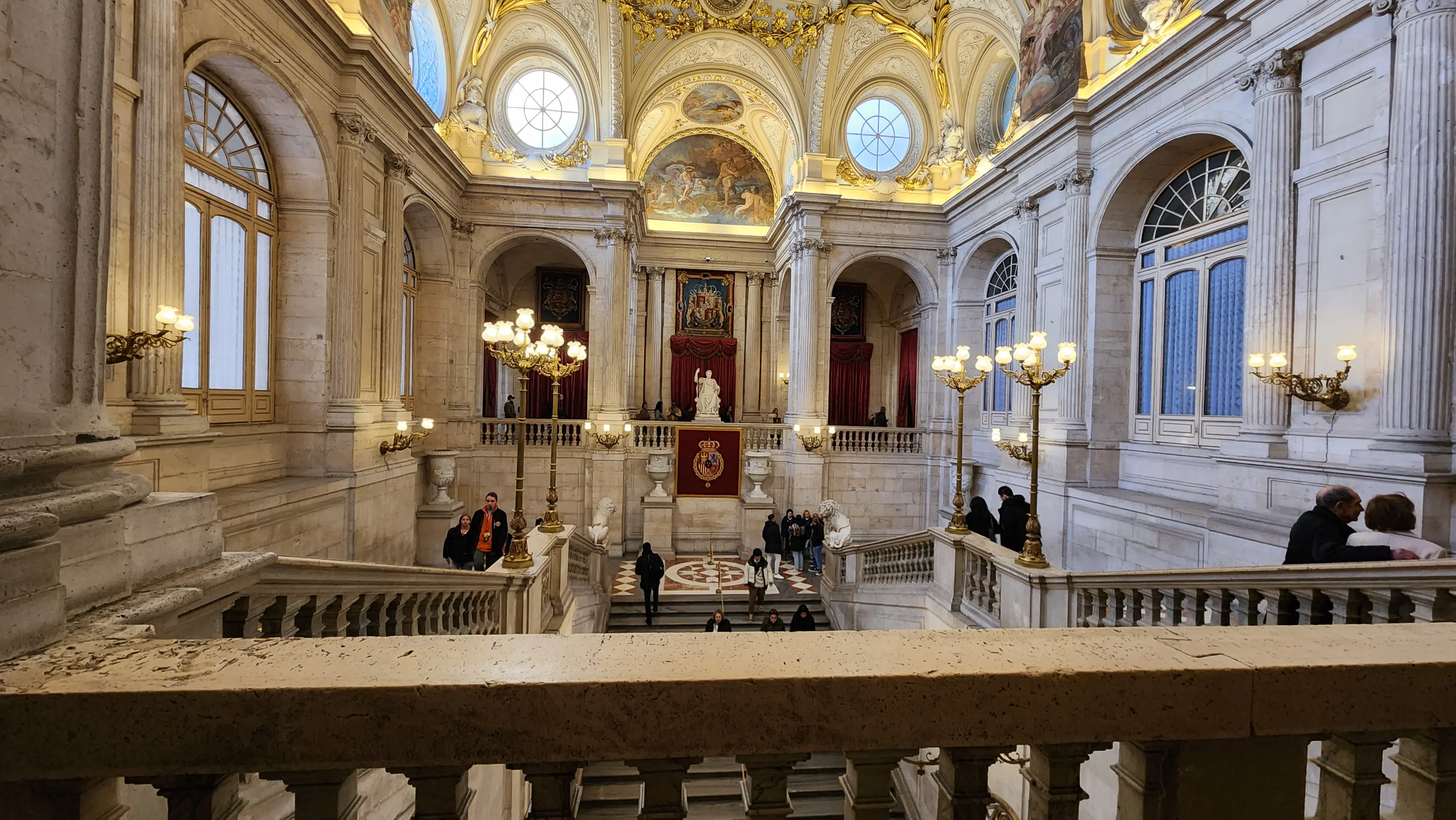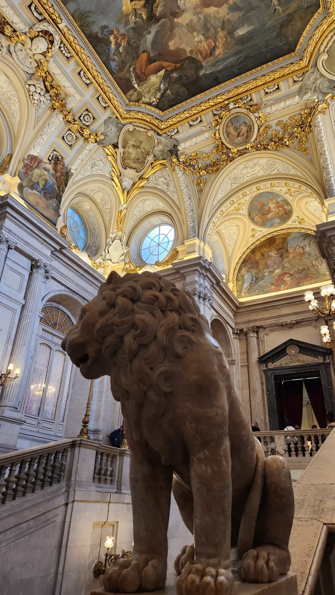 Inside, the palace’s interior is just as jaw-dropping. One of the highlights of my visit was the Grand Staircase, a marble staircase designed by Sabatini, the palace’s chief architect. At the top of the staircase, you’ll see a magnificent fresco by Giovanni Battista Tiepolo depicting “The Triumph of Religion and the Church,” symbolizing the close relationship between the Spanish crown and the Catholic Church. Climbing this staircase felt like stepping into a royal scene from centuries past!