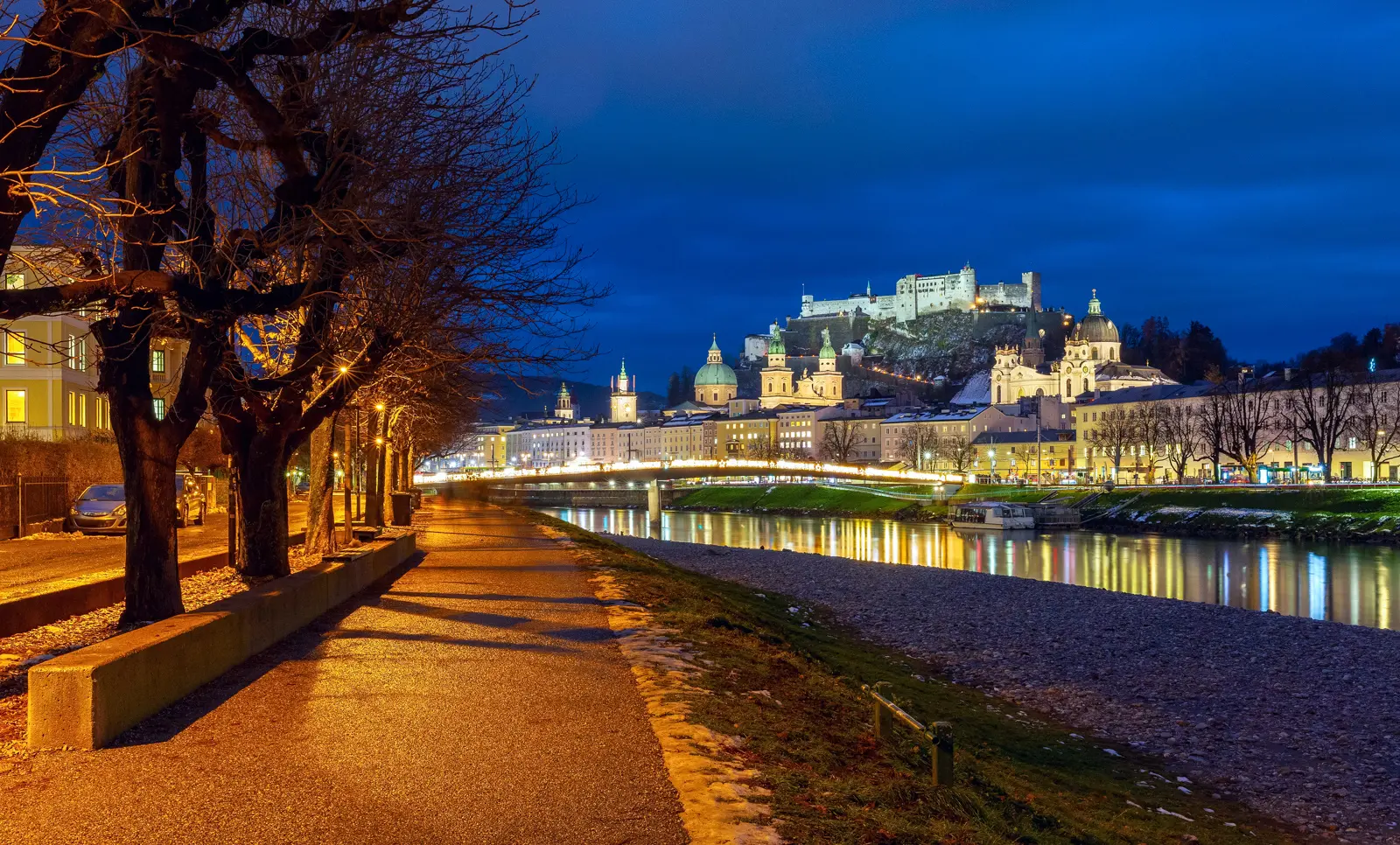 The Salzach River offers some of the most compelling vantage points from which to experience Salzburg’s landmarks. From its banks and bridges, the city reveals itself in a way that feels composed rather than fragmented, allowing individual elements to align into a cohesive whole. The silhouette of Hohensalzburg Fortress rising above the Old Town becomes particularly striking when viewed from across the water. The elevation of the fortress, combined with the openness of the river in the foreground, creates a layered sense of scale that is difficult to perceive from within the city’s narrower streets.