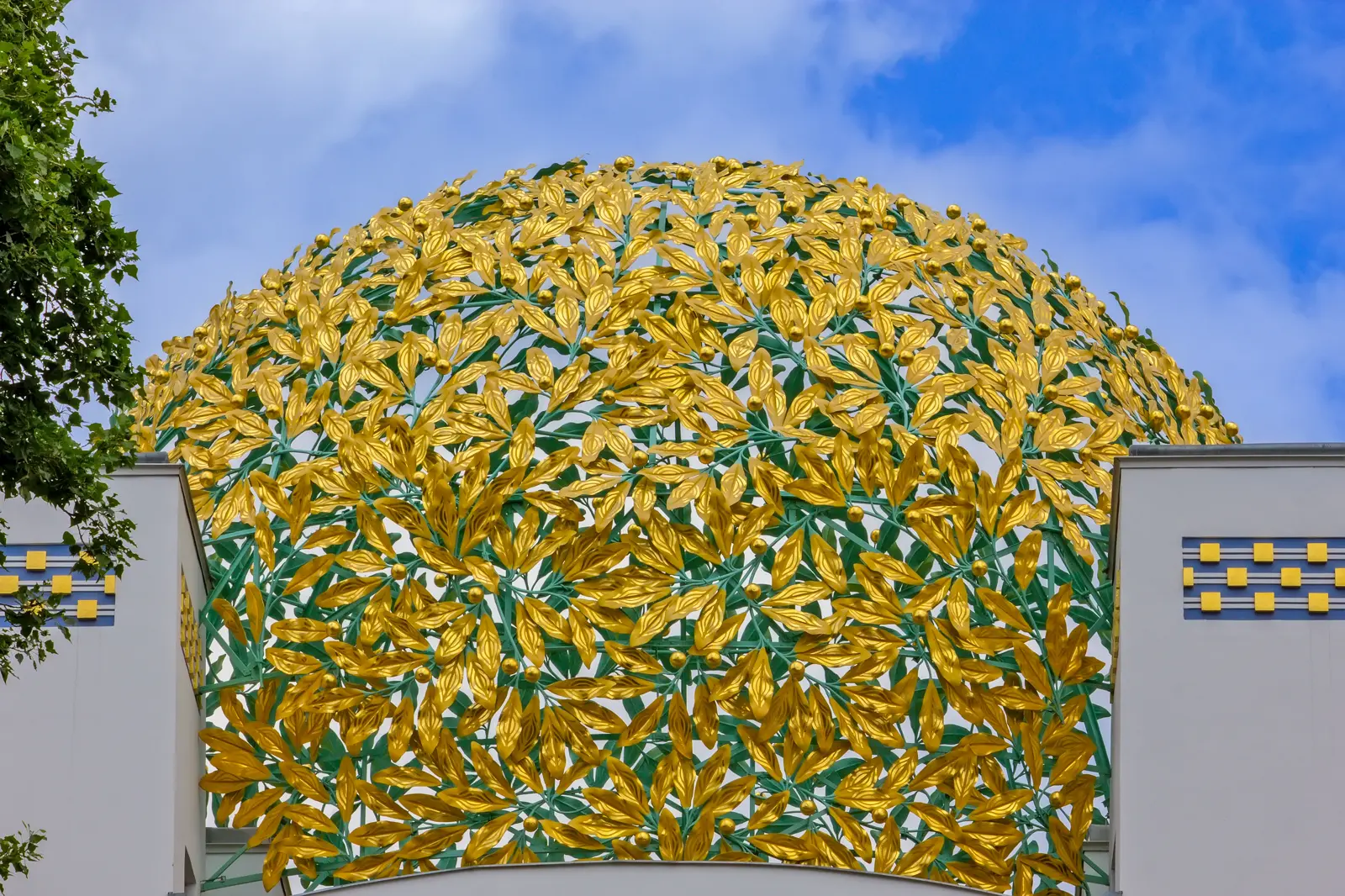 It is impossible to speak about the Secession Building without pausing at its most iconic feature: the golden dome. Often affectionately referred to as the “golden cabbage”, the dome is composed of thousands of gilded laurel leaves and delicate ornamental berries, forming an intricate, openwork sphere that sits in striking contrast to the simplicity of the white structure below. Both ornamental and symbolic, it evokes ideas of victory, creativity, and artistic achievement – a crown not of power, but of ideas.