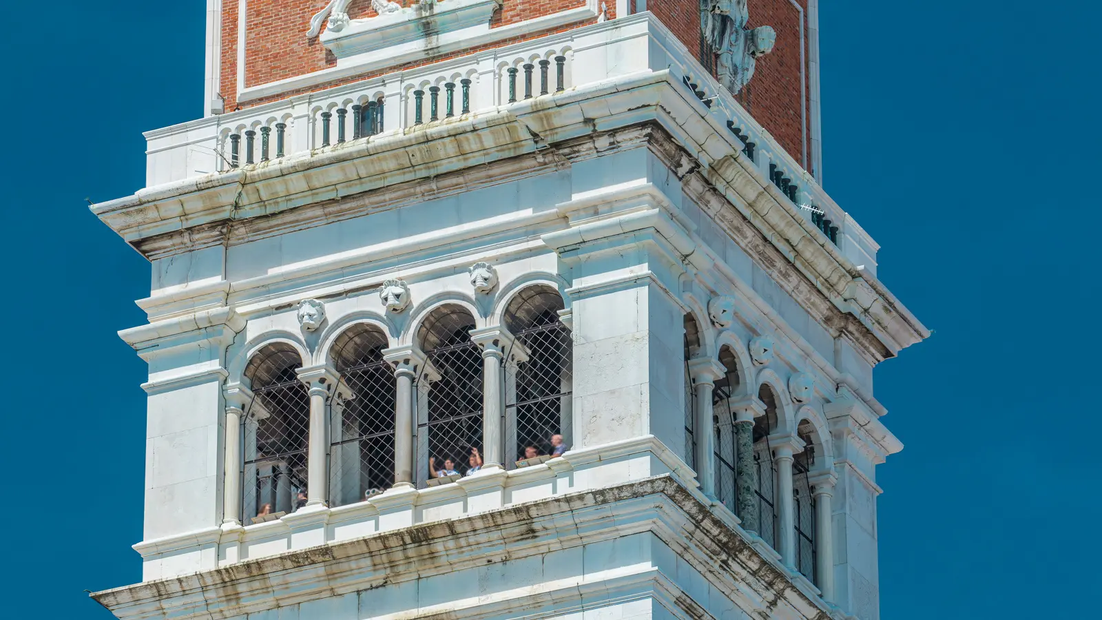 Over centuries, the Campanile evolved into a bell tower closely tied to the political and religious life of the Republic of Venice. The structure reached its familiar height – just under 99 meters (324 feet) – in the early 16th century, with its distinctive belfry completed in 1514. Its elegant simplicity contrasts with the ornate richness of St. Mark’s Basilica beside it, creating a balance that defines Piazza San Marco.