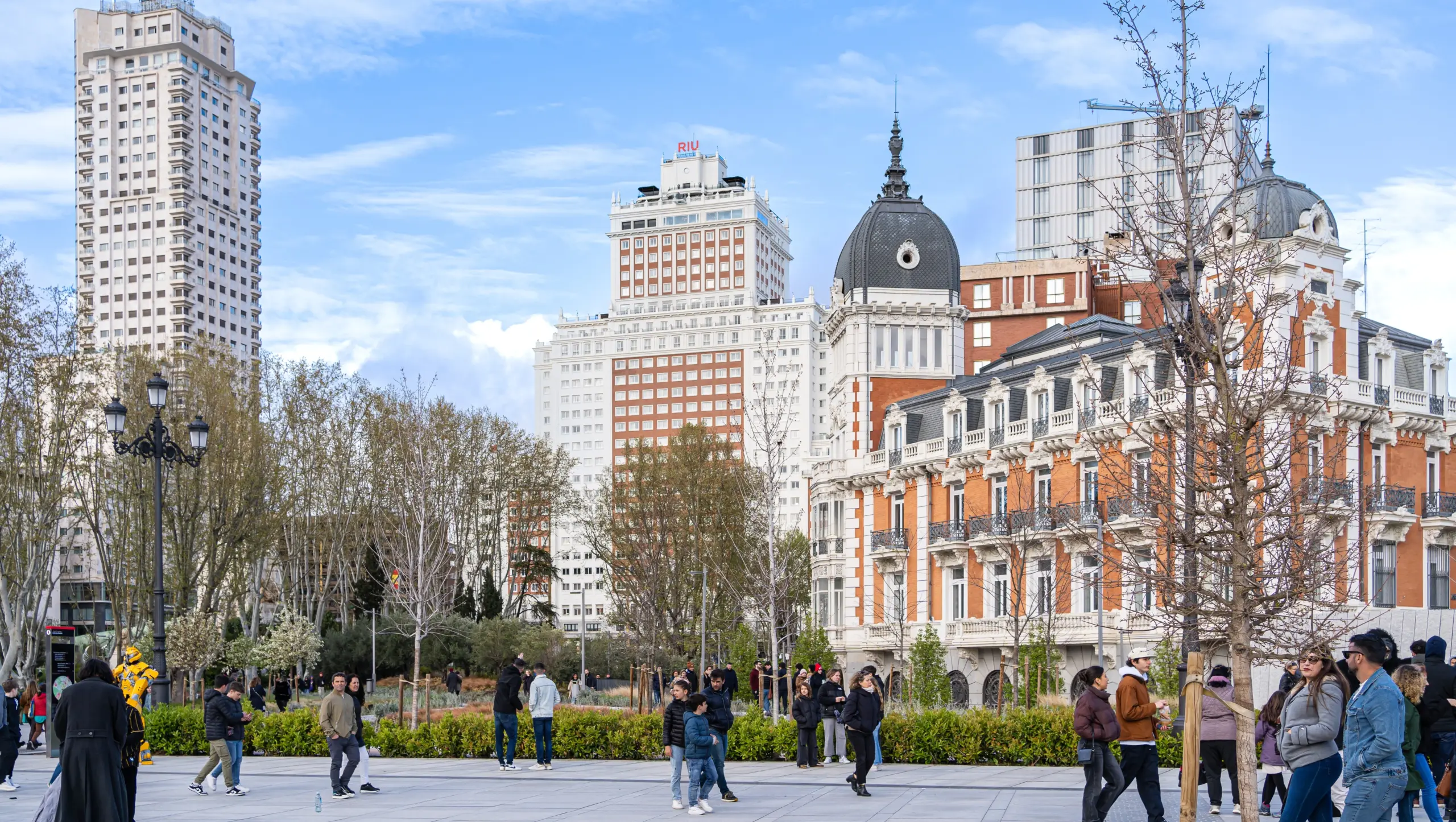 Continue to Plaza de España, where Madrid’s grand urban renewal has created a fresh, lively space filled with gardens, wide pedestrian areas, and elegant fountains. Stroll along the new pathways, admire the Don Quijote and Sancho Panza monument, and look up at the iconic Edificio España rising proudly over the square. It’s a perfect blend of old and new Madrid – historic architecture, modern design, and an inviting energy that makes the area ideal for an early-evening walk.