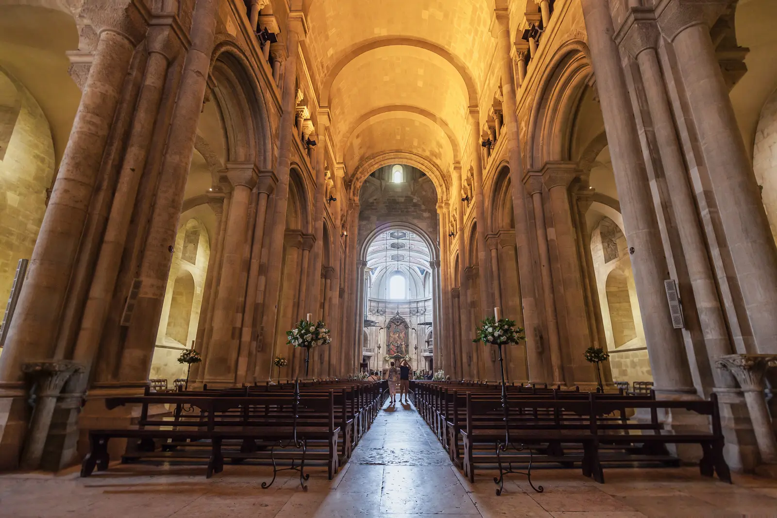 Lisbon’s oldest cathedral, Sé de Lisboa, stands proudly at the edge of Alfama. Its fortress-like exterior, rose windows, Gothic chapels, and peaceful cloister weave together centuries of history – Romanesque foundations, medieval additions, and later restorations. Step inside for cool stone corridors, filtered light, and a sense of ancient Lisbon preserved within its walls.