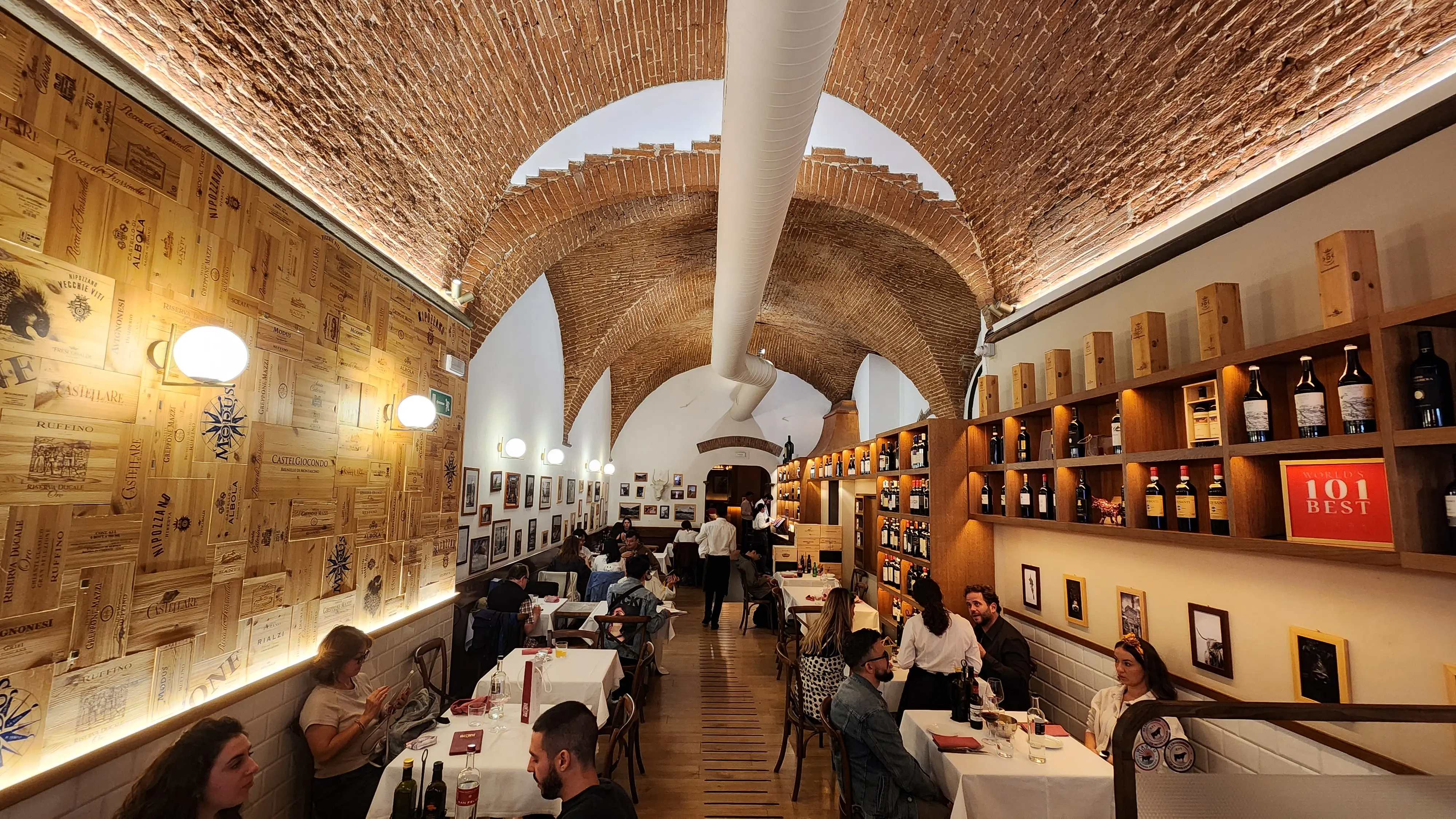 Trattoria Dall’Oste is a cozy yet elegant space that feels like a blend of a traditional Tuscan trattoria and a modern steakhouse. Exposed brick walls, rustic wooden tables, and wine displays create an inviting atmosphere. The decor reflects Florence’s warm and welcoming vibe, while subtle touches of modernity add to the charm.