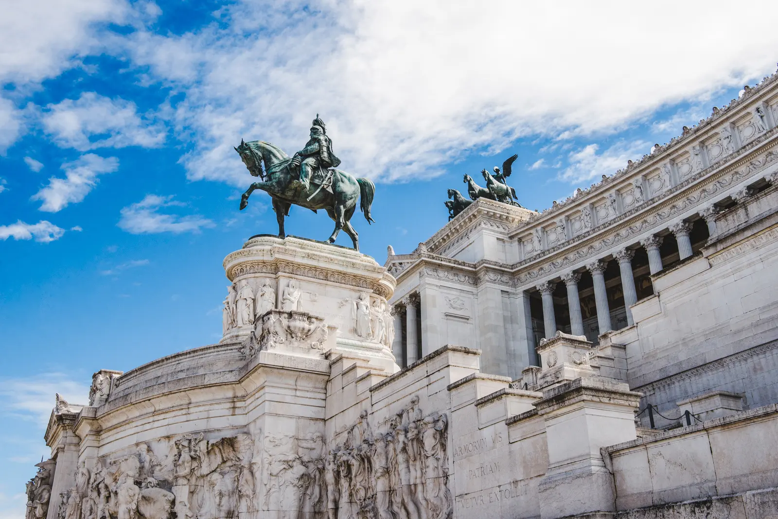 🐴 Equestrian statue: Victor Emmanuel II on horseback — the first king of unified Italy, in bronze at the center of the monument
