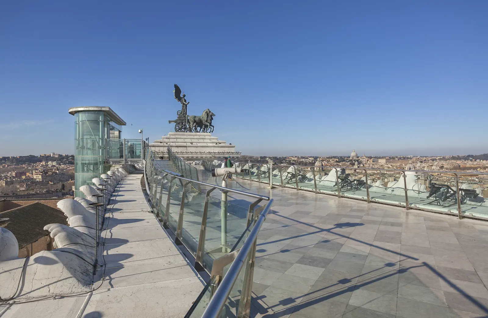 💡 Tip: Take the elevator to the panoramic terrace — it’s one of Rome’s best and most underrated viewpoints, and far less crowded than the Castel Sant’Angelo rooftop